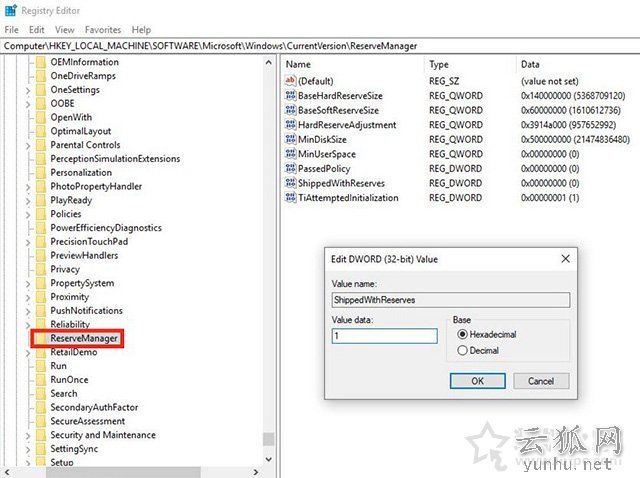 HKEY_LOCAL_MACHINE\SOFTWARE\Microsoft\Windows\CurrentVersion\ReserveManager