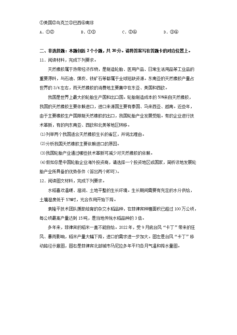 2023年内蒙古包头中考地理真题及答案(Word版)07-05
