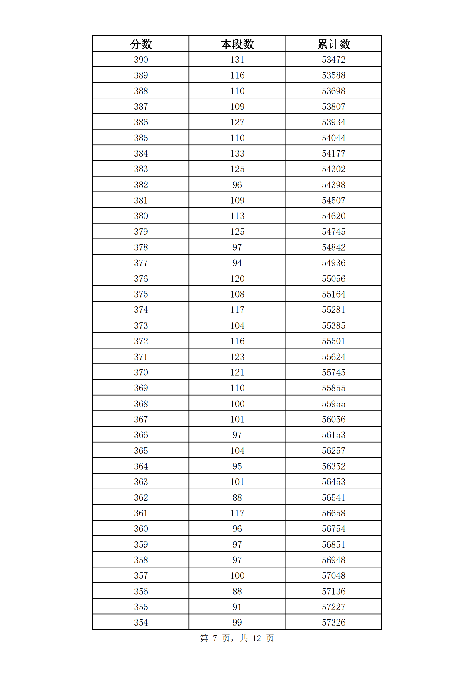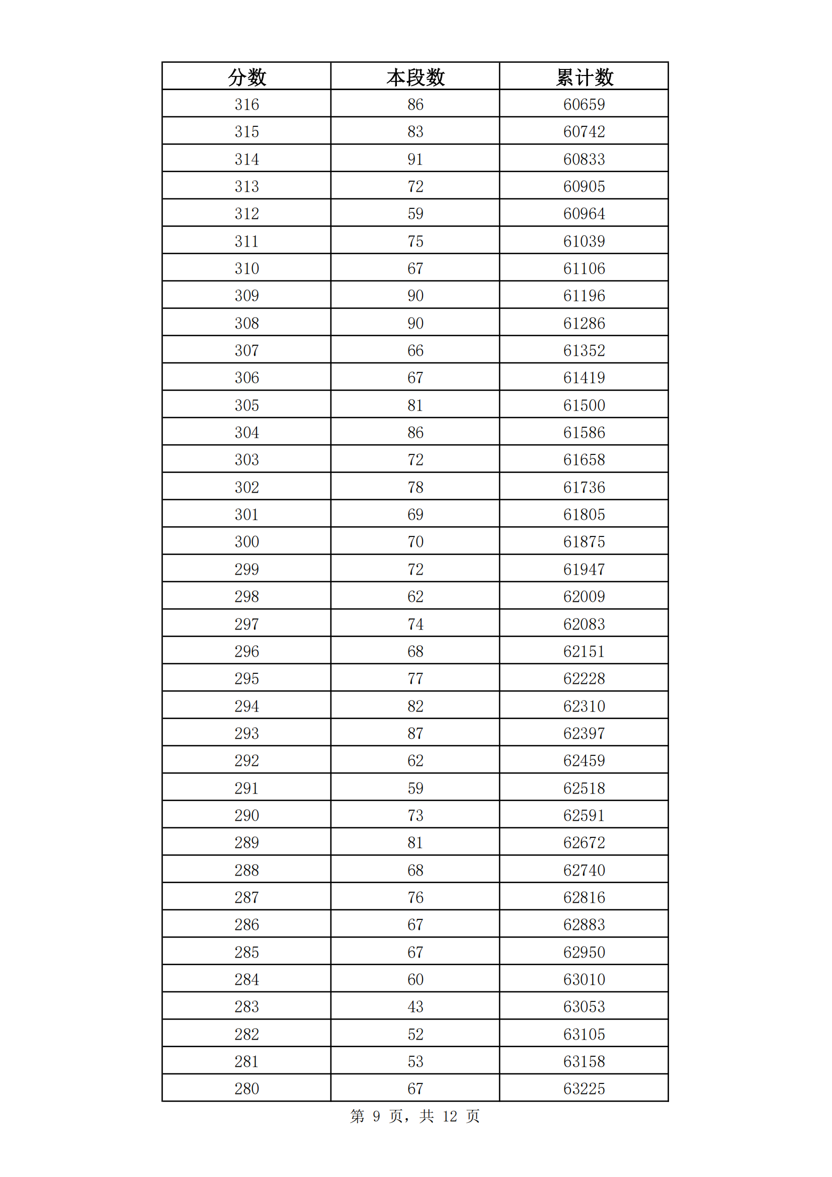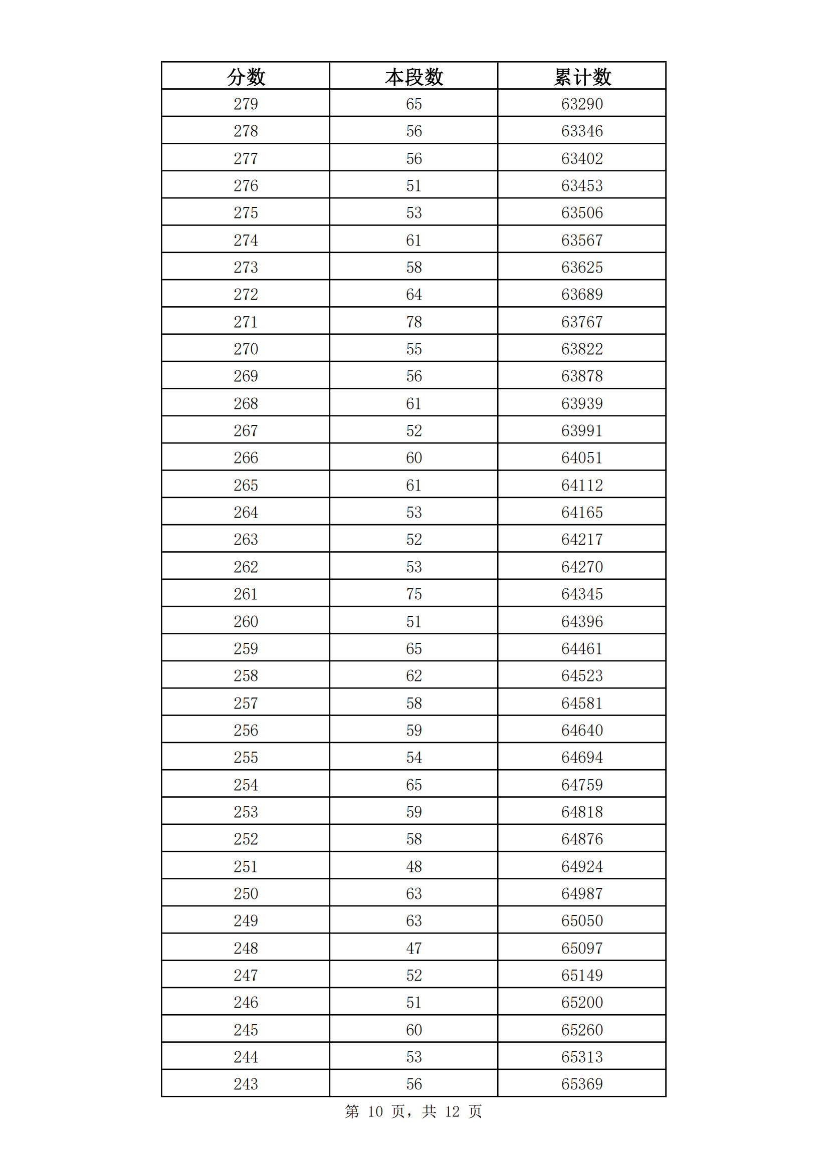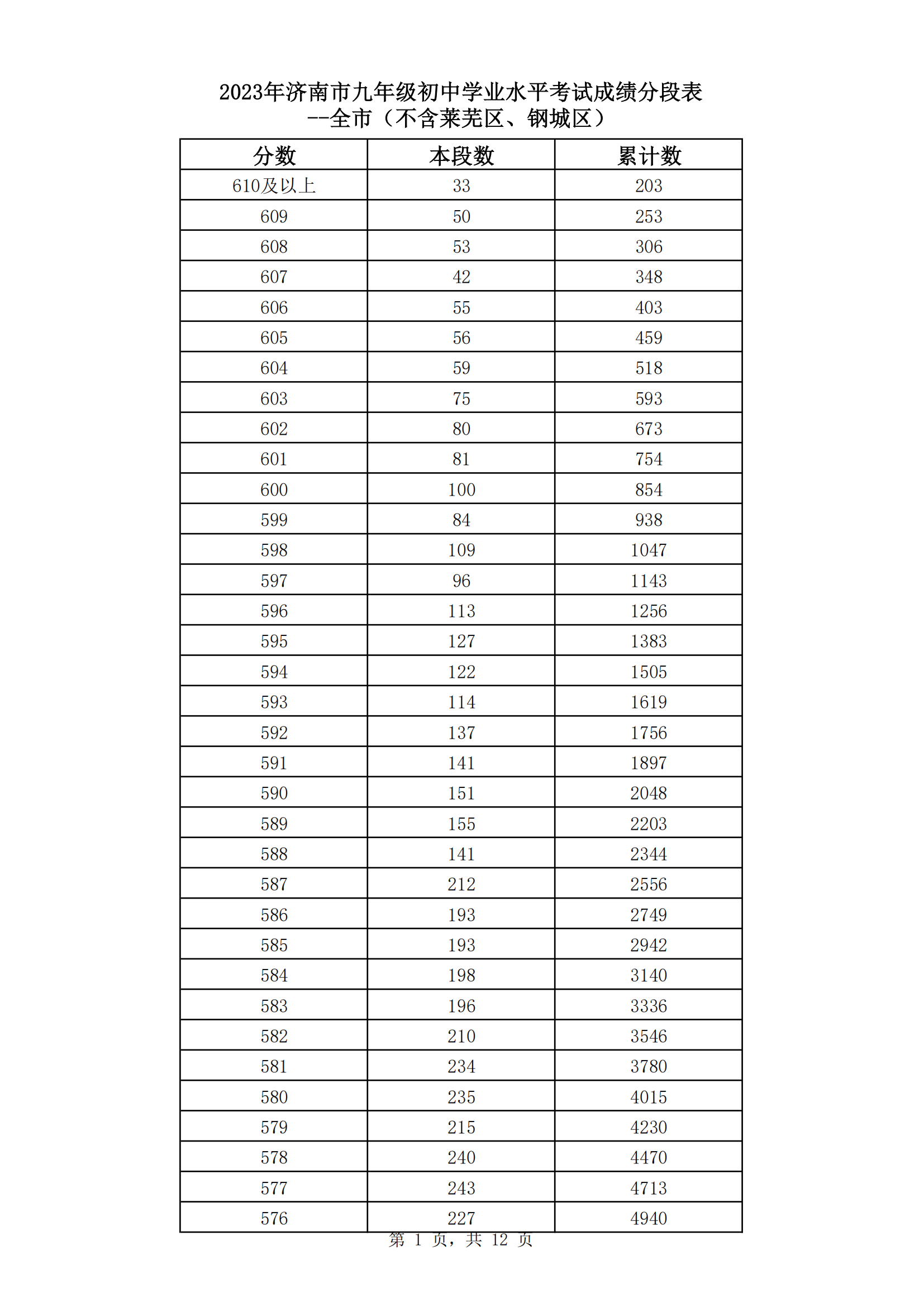 2023年山东济南九年级初中学业水平考试成绩分段表(不含莱芜区、钢城区)06-30