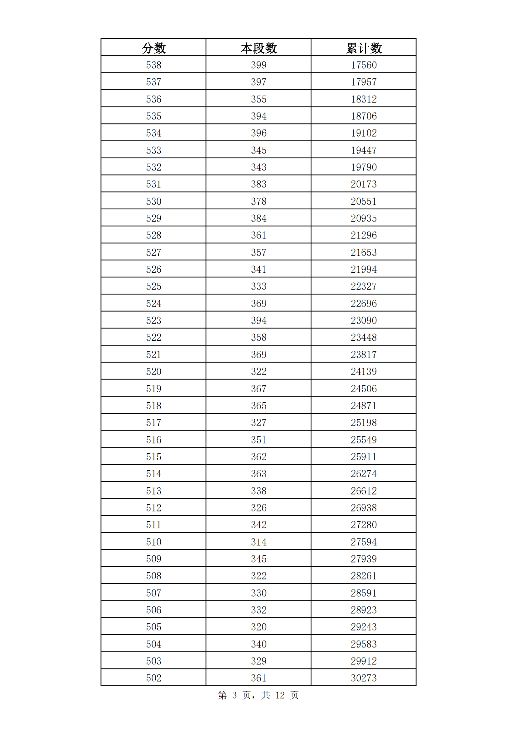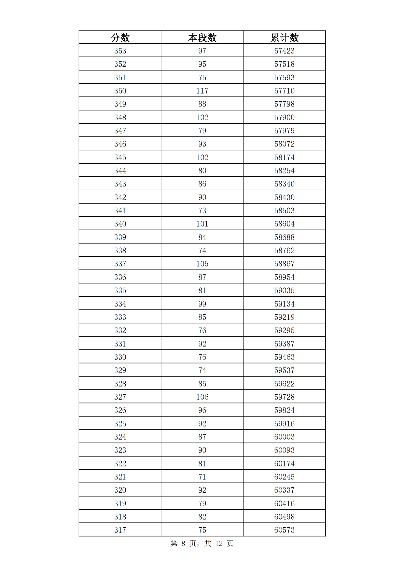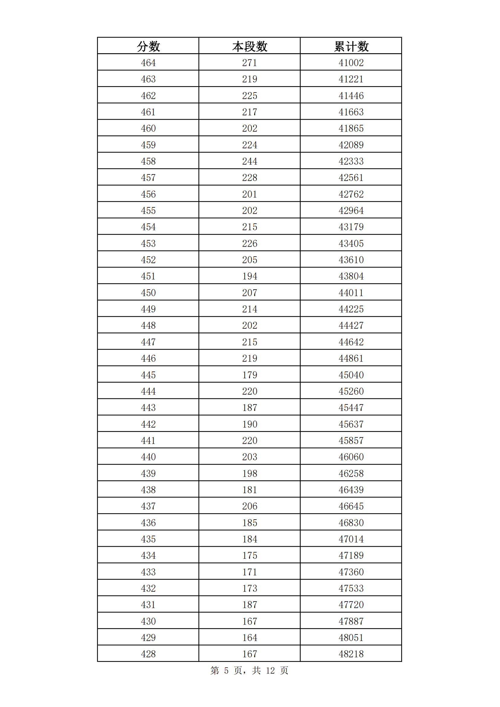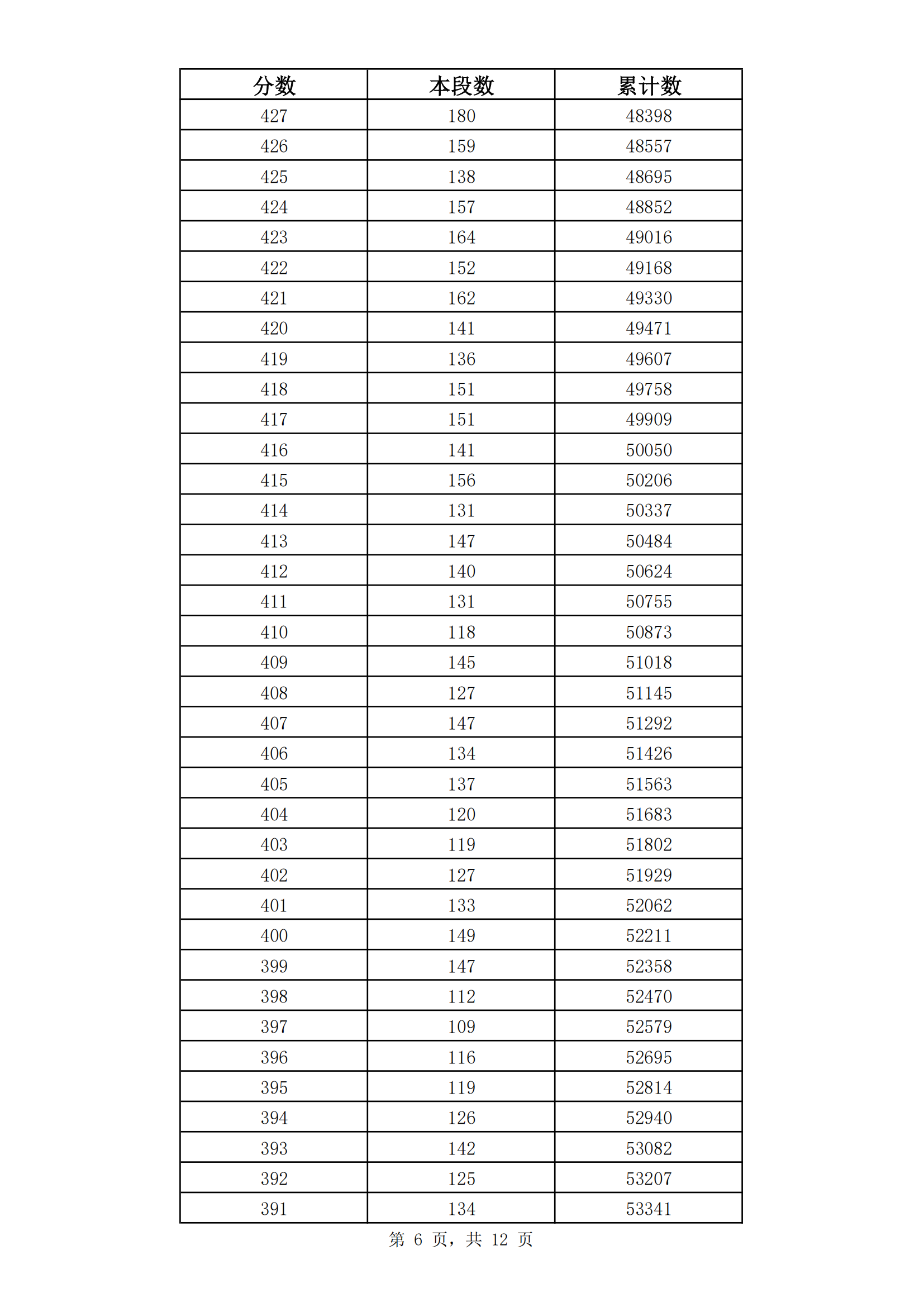 2023年山东济南九年级初中学业水平考试成绩分段表(不含莱芜区、钢城区)06-30