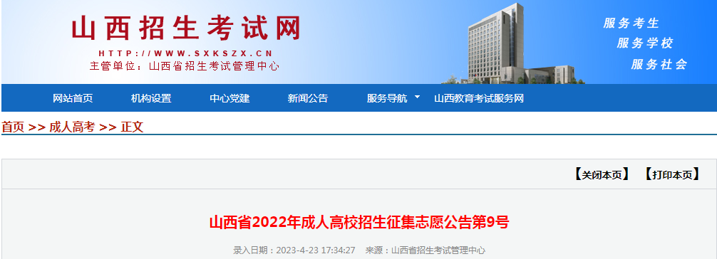 山西省2022年成人高校招生征集志愿公告第9号(征集志愿时间4月24日15时截止)04-24