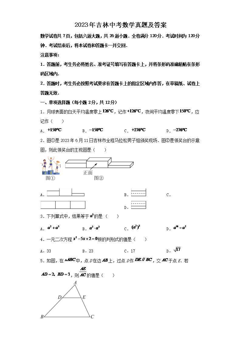 【文档预览】 文档大全网整理发布2023年吉林中考数学真题及答案(Word版),前五页预览如下: