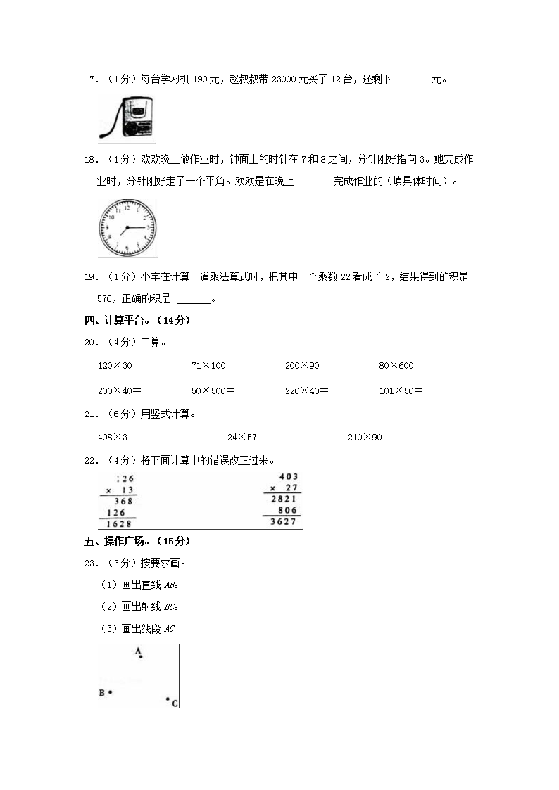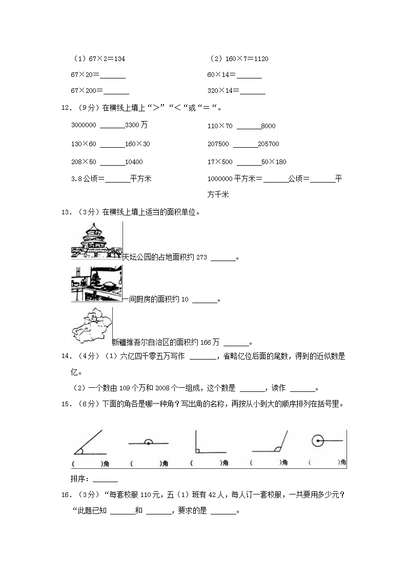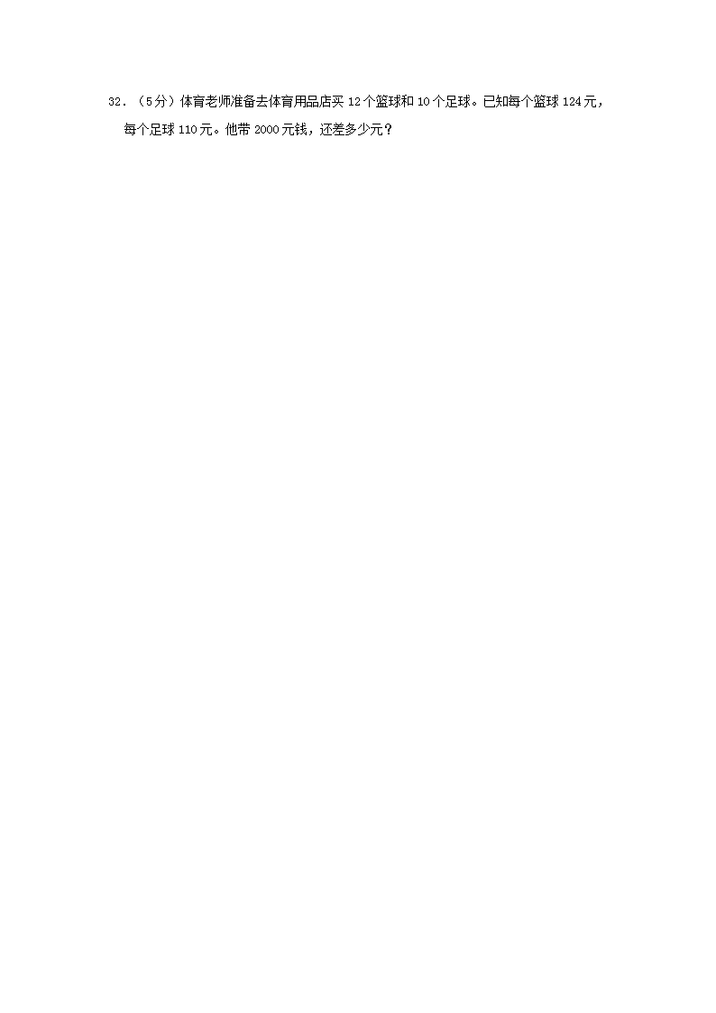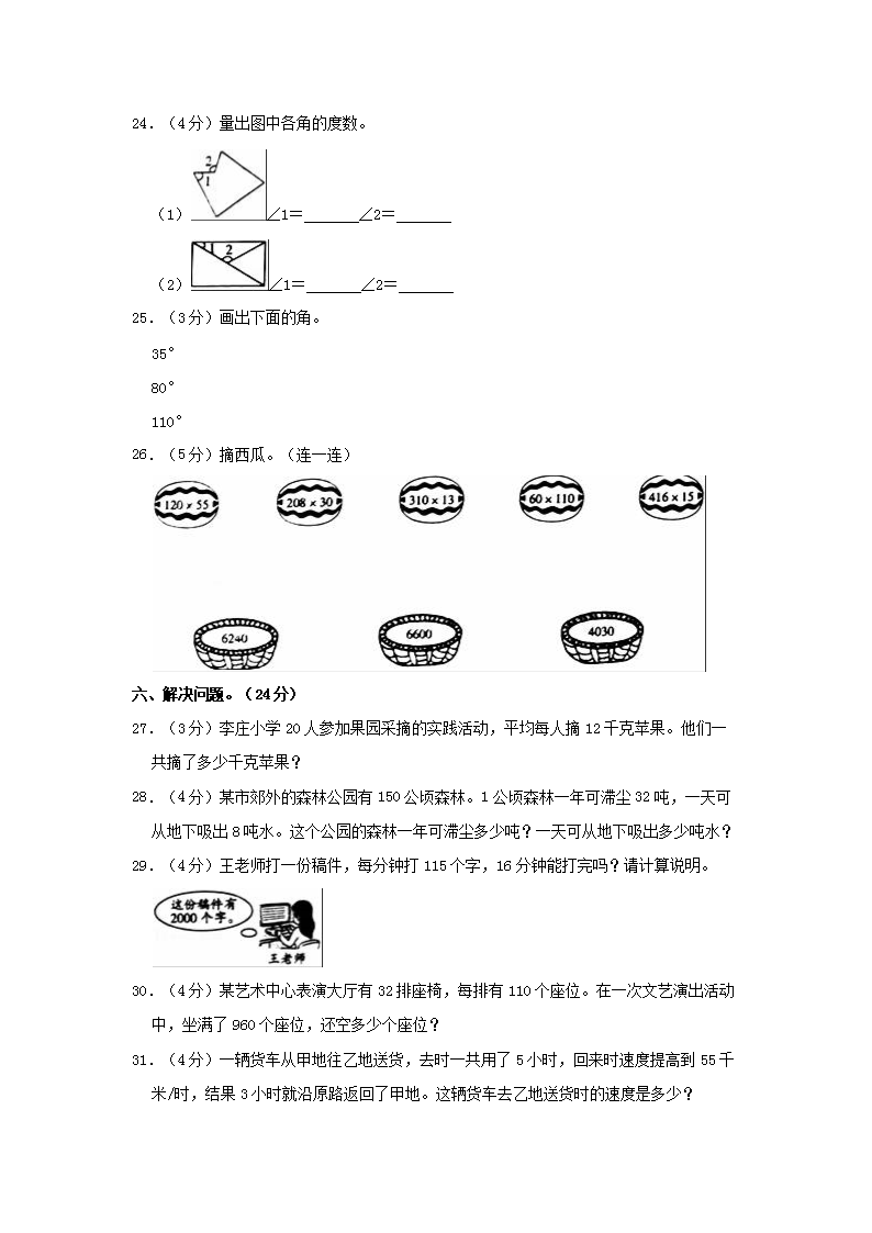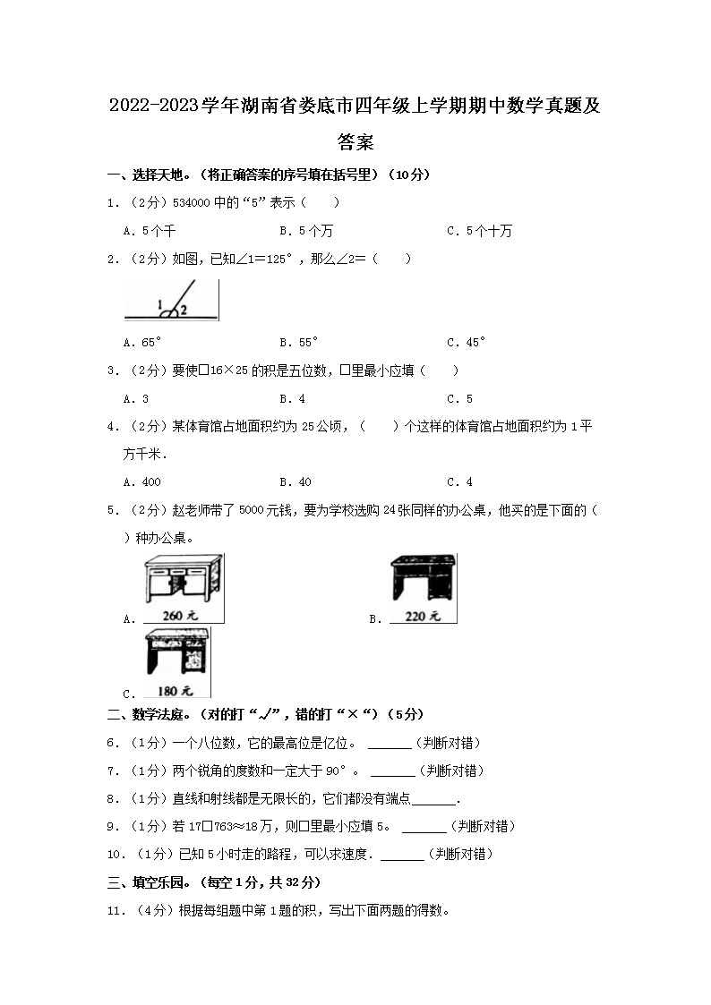 2022-2023学年湖南省娄底市四年级上学期期中数学真题及答案(Word版)10-12