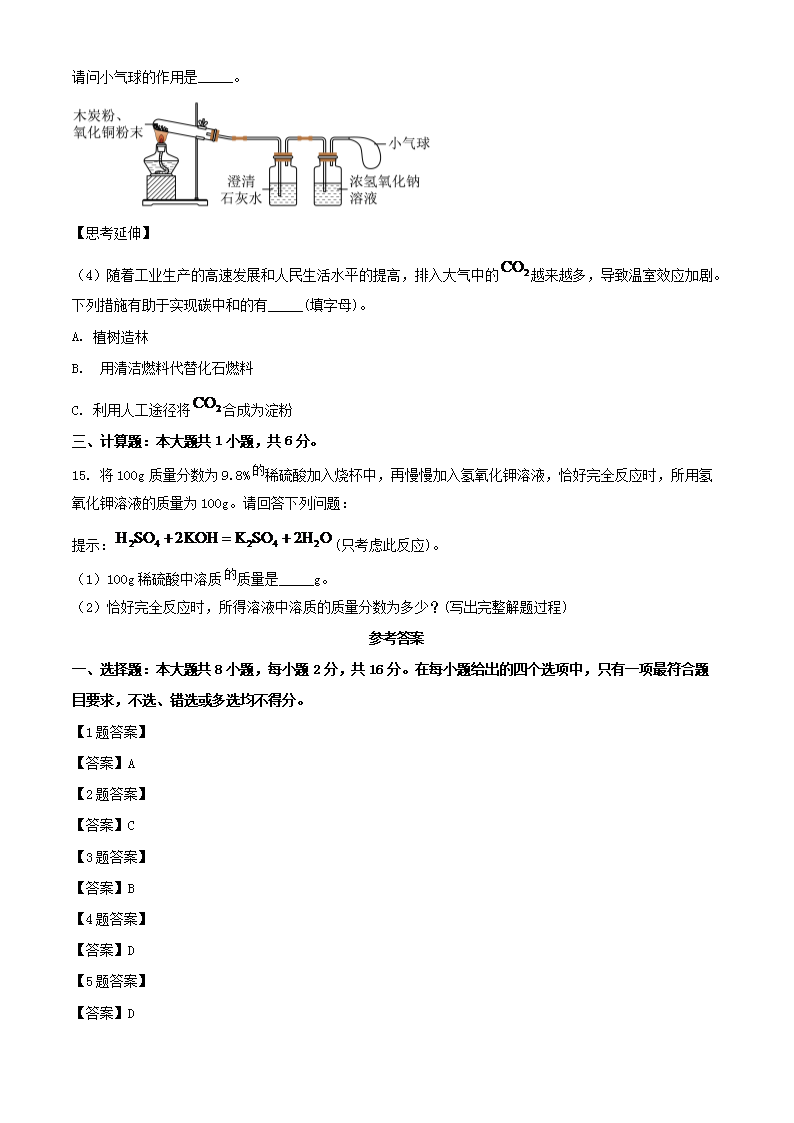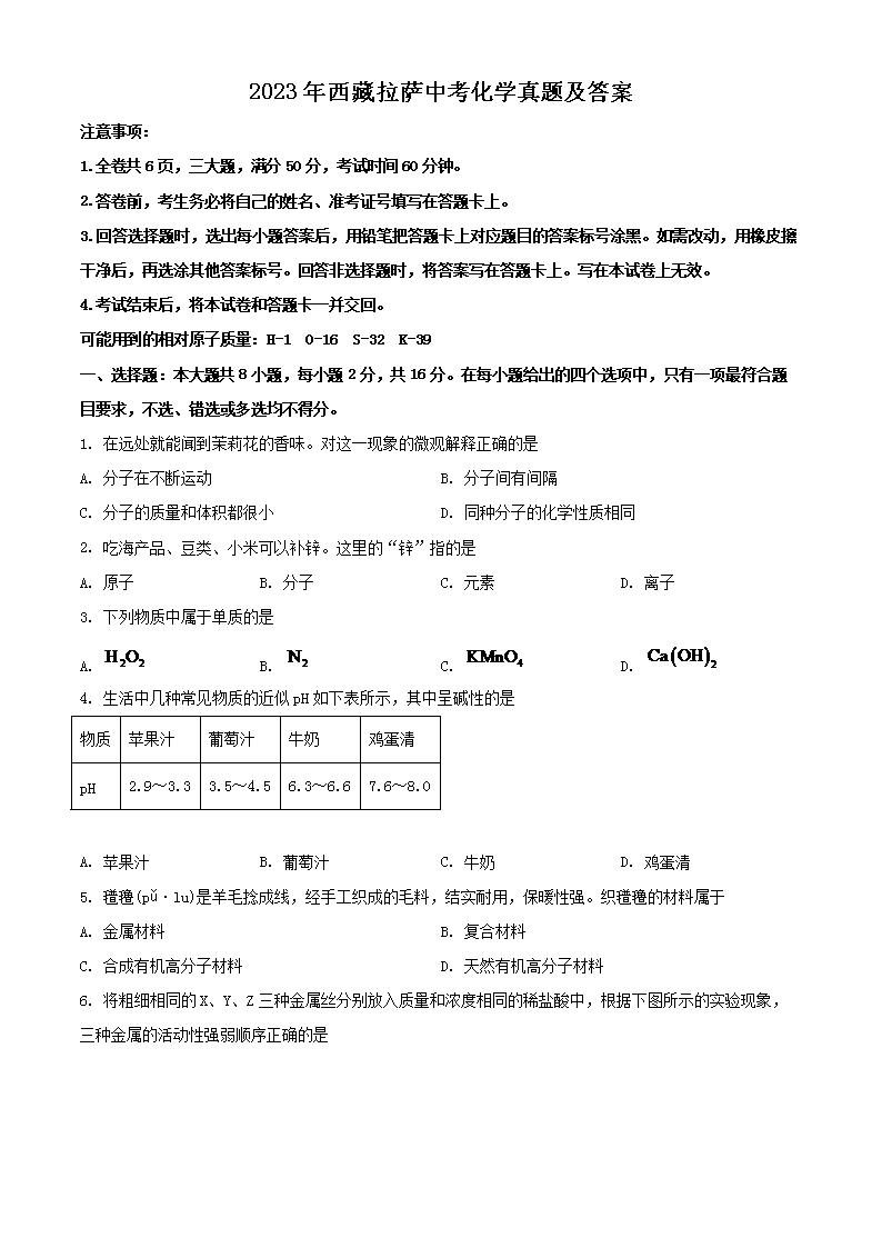 2023年西藏拉萨中考化学真题及答案(Word版)10-14