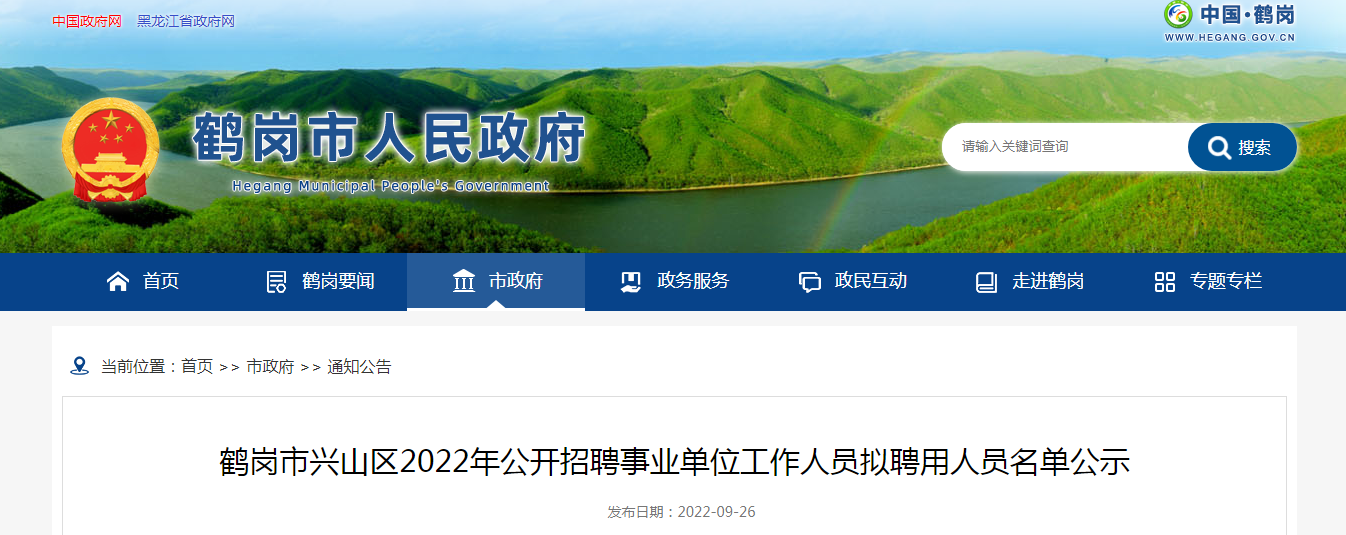 2022年黑龙江省鹤岗市兴山区公开招聘事业单位工作人员拟聘用人员名单公示09-27