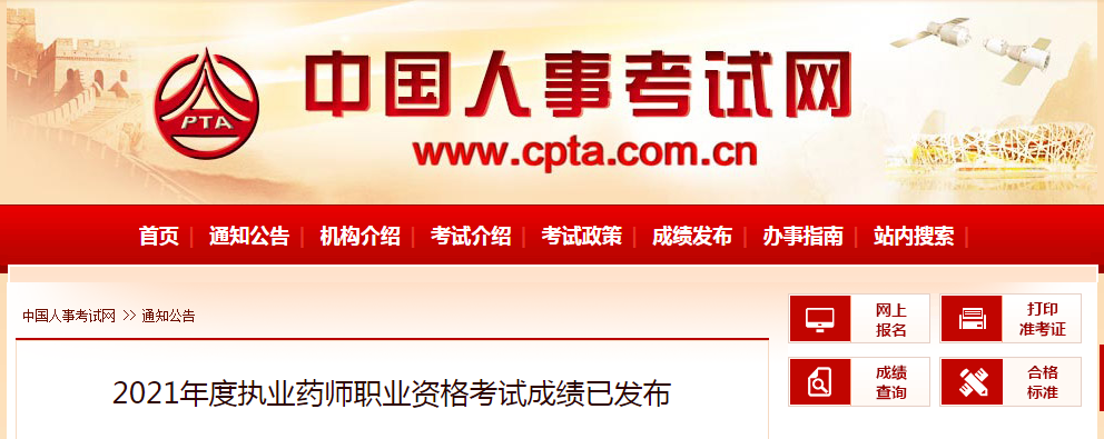 2021年黑龙江执业药师职业资格考试成绩于2021年12月24日发布,请考生到中国人事考试网进行查分。