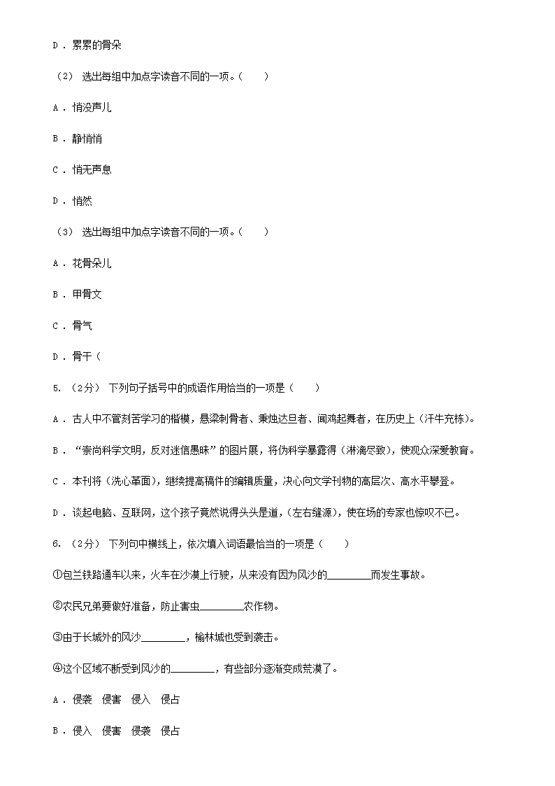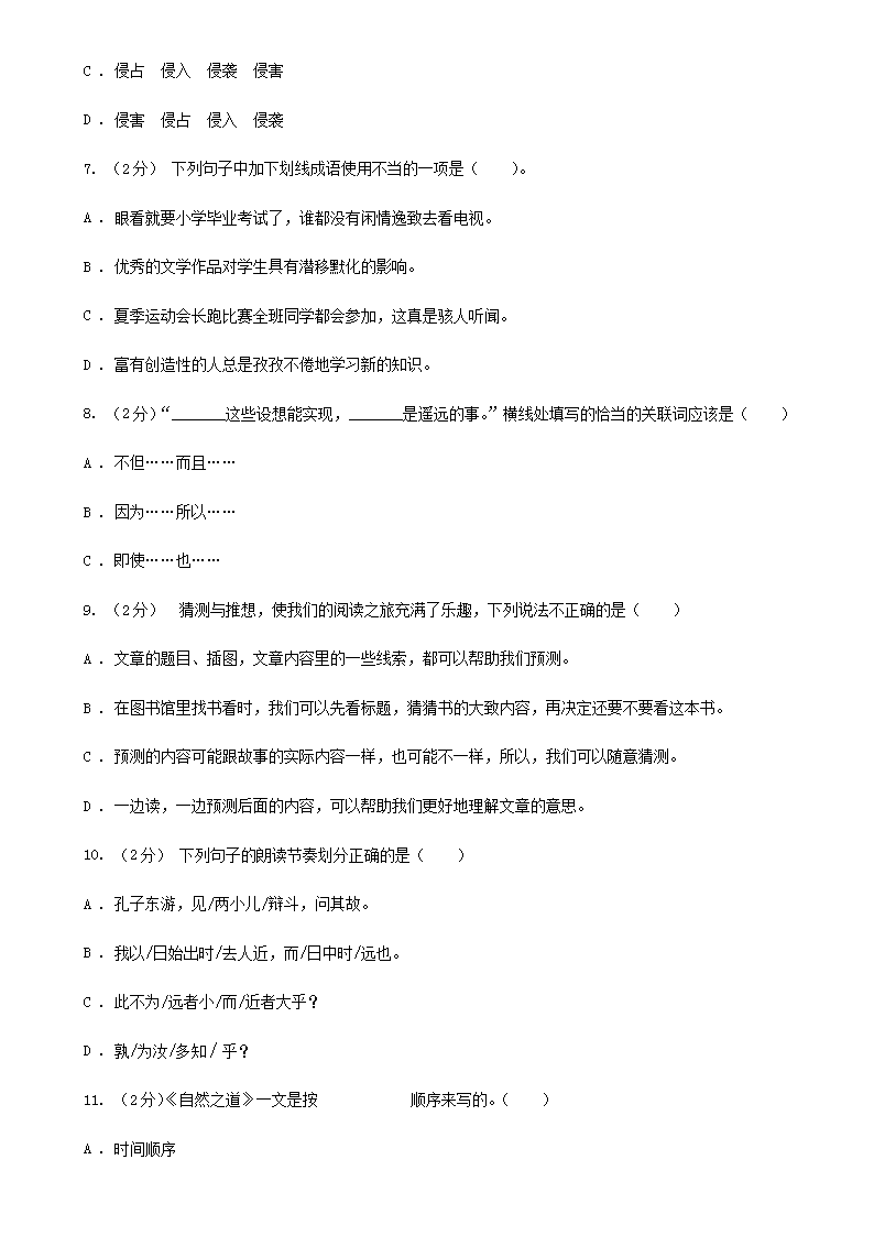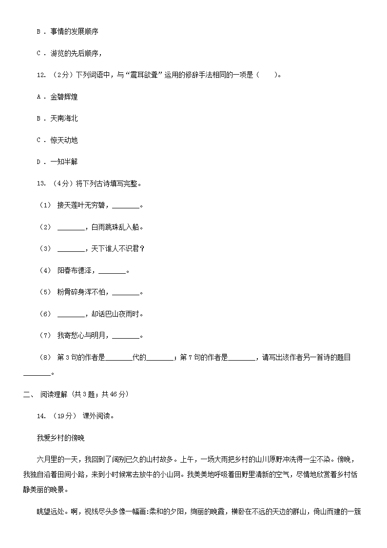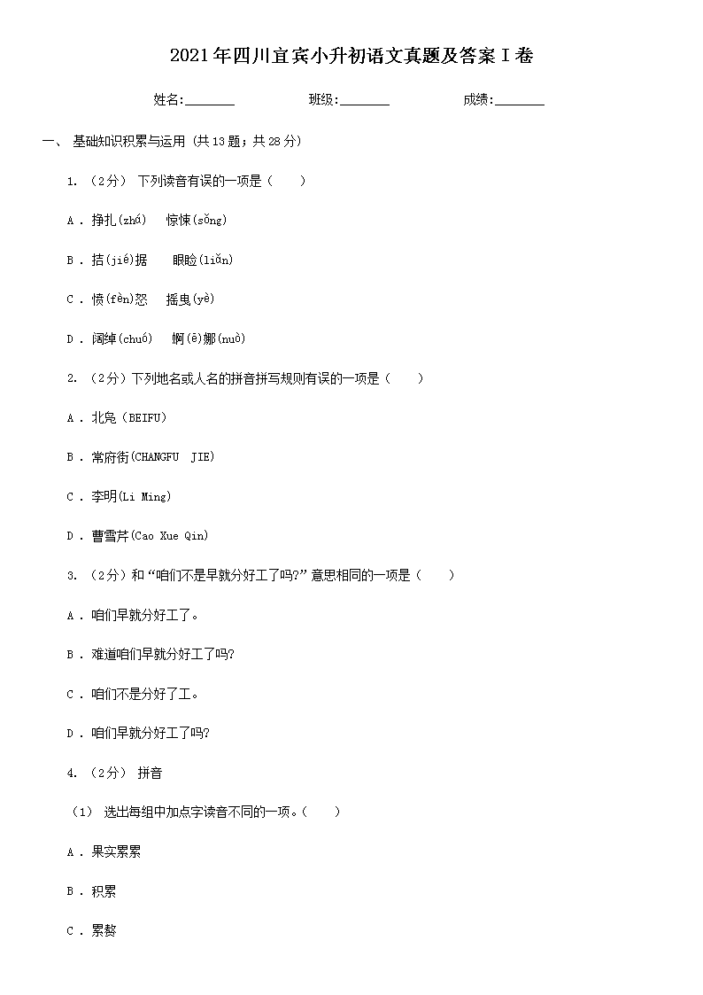 2021年四川宜宾小升初语文真题及答案I卷(Word版)08-30