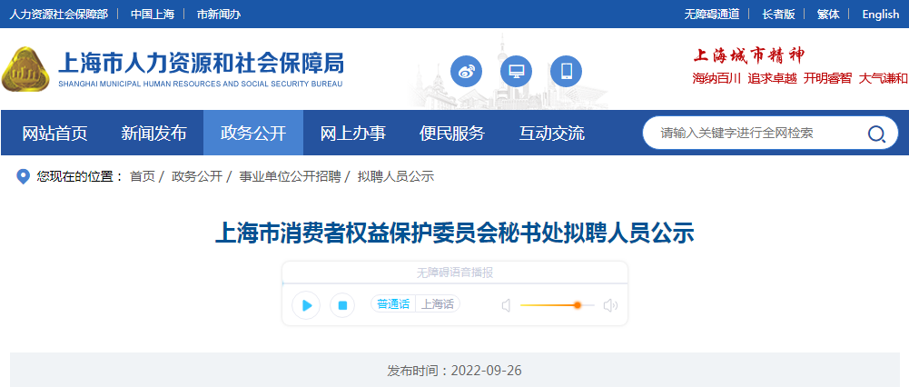 【#事业单位# 导语】2022年上海市消费者权益保护委员会秘书处拟聘人员公示已发布。公示时间:2022年09月26日—2022年10月03日。©文档大全网为您整理了以下内容,供您参考。