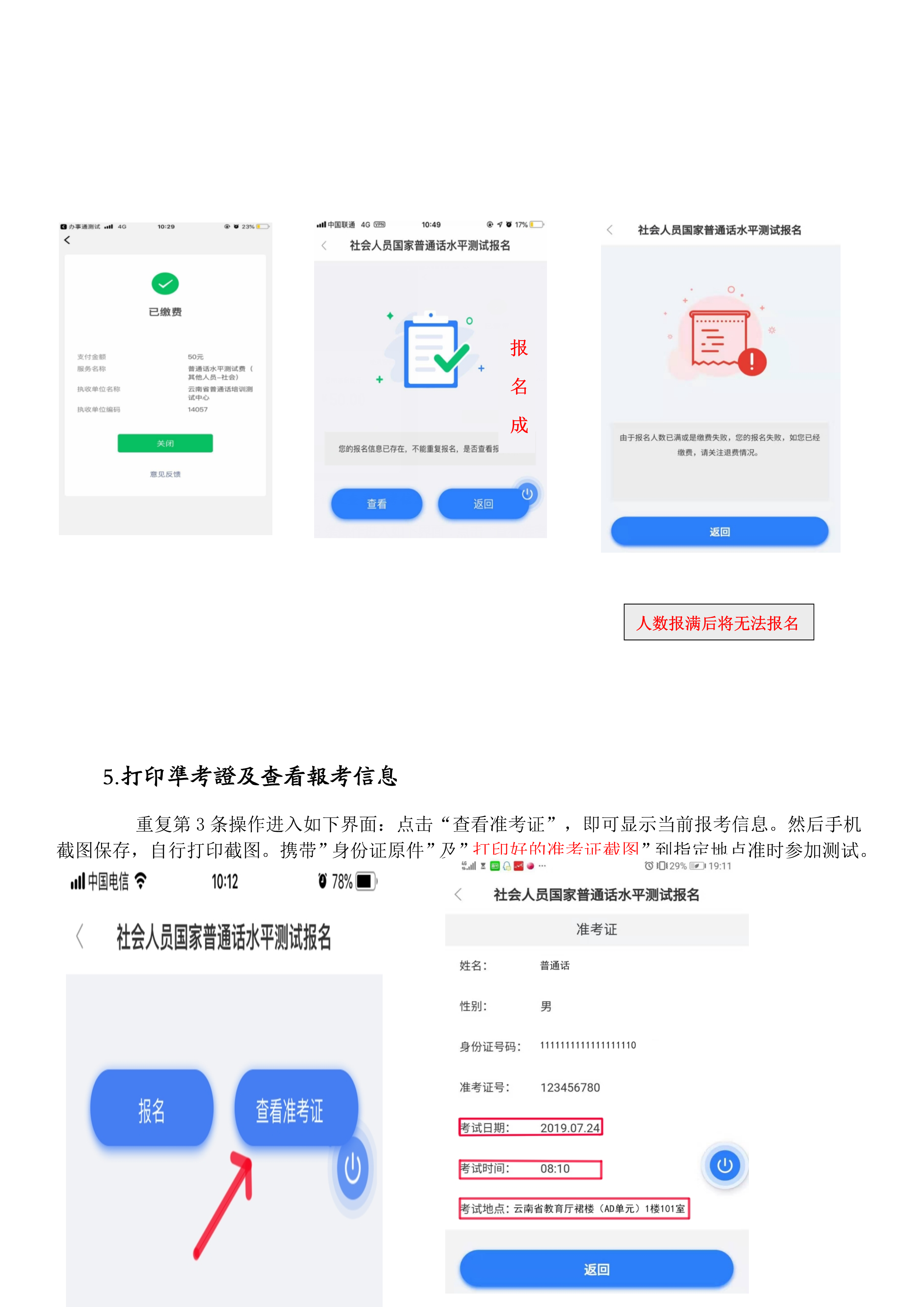 3.依据《云南省发展和改革委员会云南省财政厅关于适当调整我省普通话水平测试收费标准的通知》(云发改收费〔2009〕1247号),考生在线缴纳测试费¥50元。网上缴费成功后无法作任何修改,准考证上个人信息与本人身份证信息不符的考生不得参加测试。