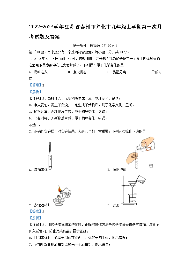 2022-2023学年江苏省泰州市兴化市九年级上学期第一次月考试题及答案(Word版)09-21