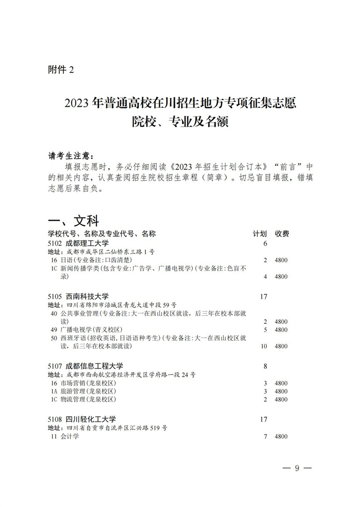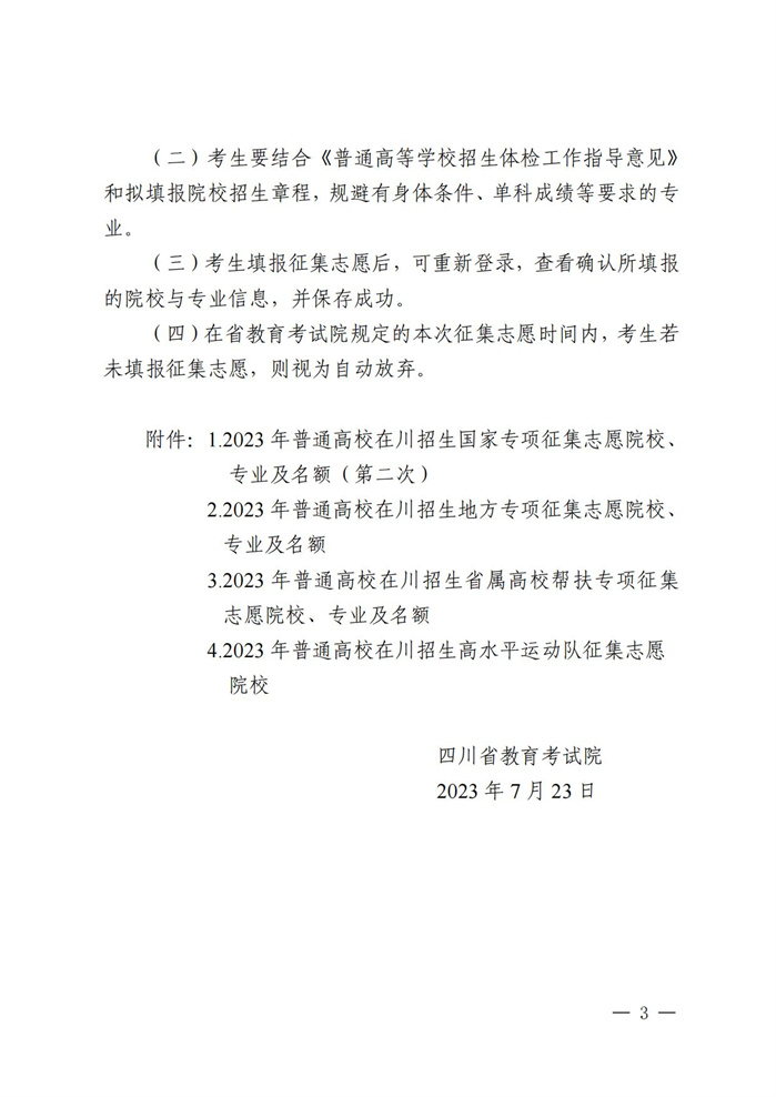 2023年四川高考国家各专项计划及高水平运动队征集志愿的通知07-25