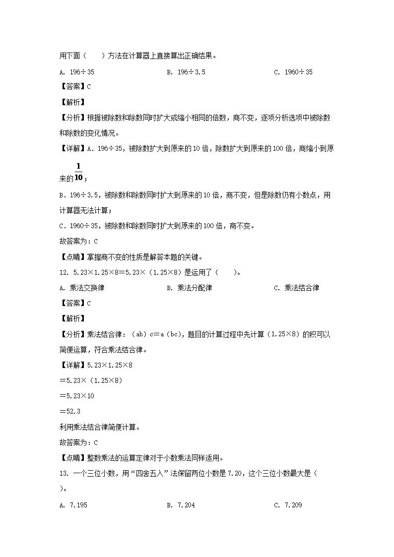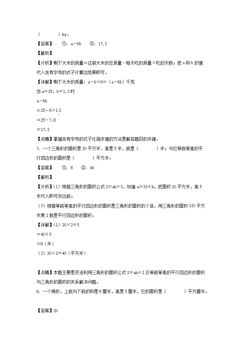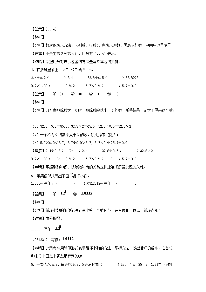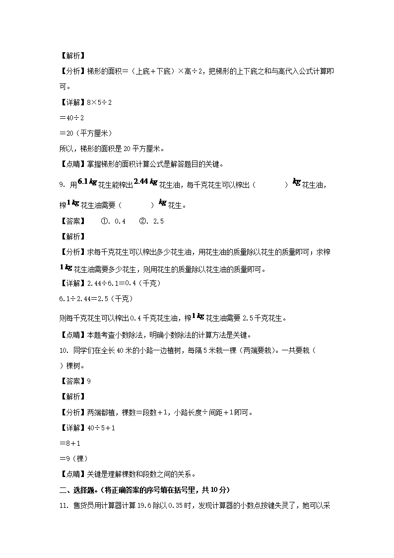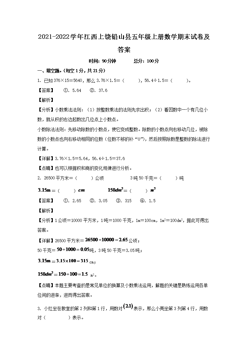 2021-2022学年江西上饶铅山县五年级上册数学期末试卷及答案(Word版)09-08