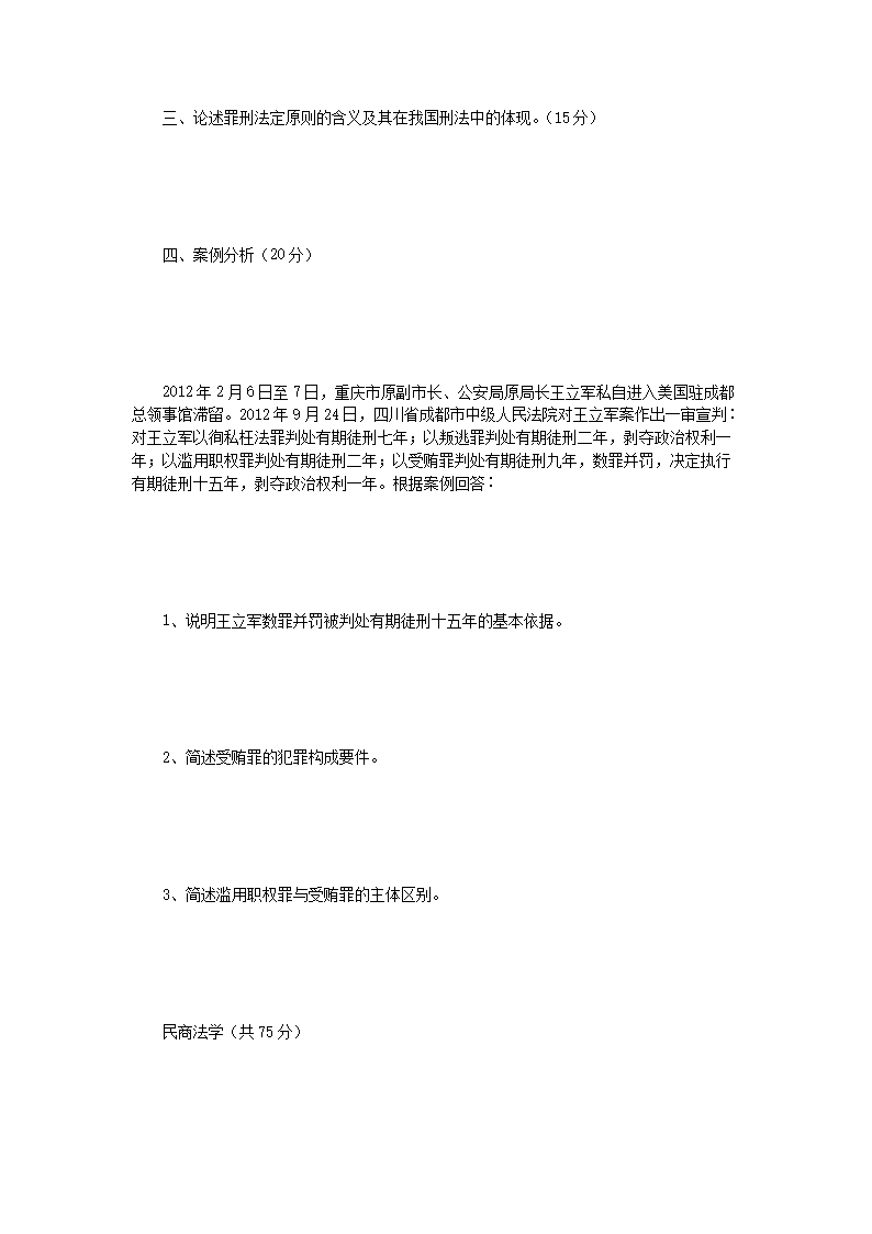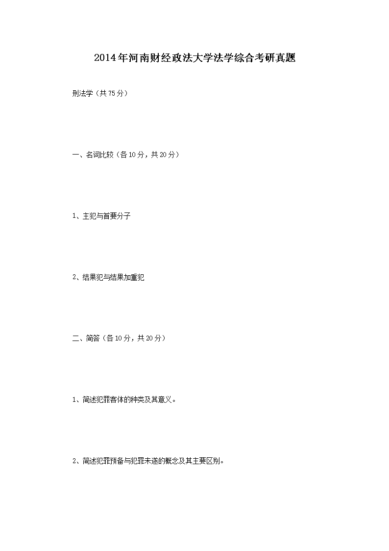 2014年河南财经政法大学法学综合考研真题(Word版)06-20