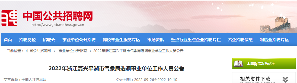【#事业单位# 导语】2022年浙江省嘉兴市平湖市气象局选调事业单位工作人员公告已发布。©文档大全网现将招聘公告原文发布如下: