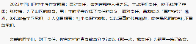 【#中考# 导语】2023年四川巴中中考语文考试已经结束,©文档大全网为大家整理了2023年四川巴中中考作文题目供大家参考,作文题目详情如下: