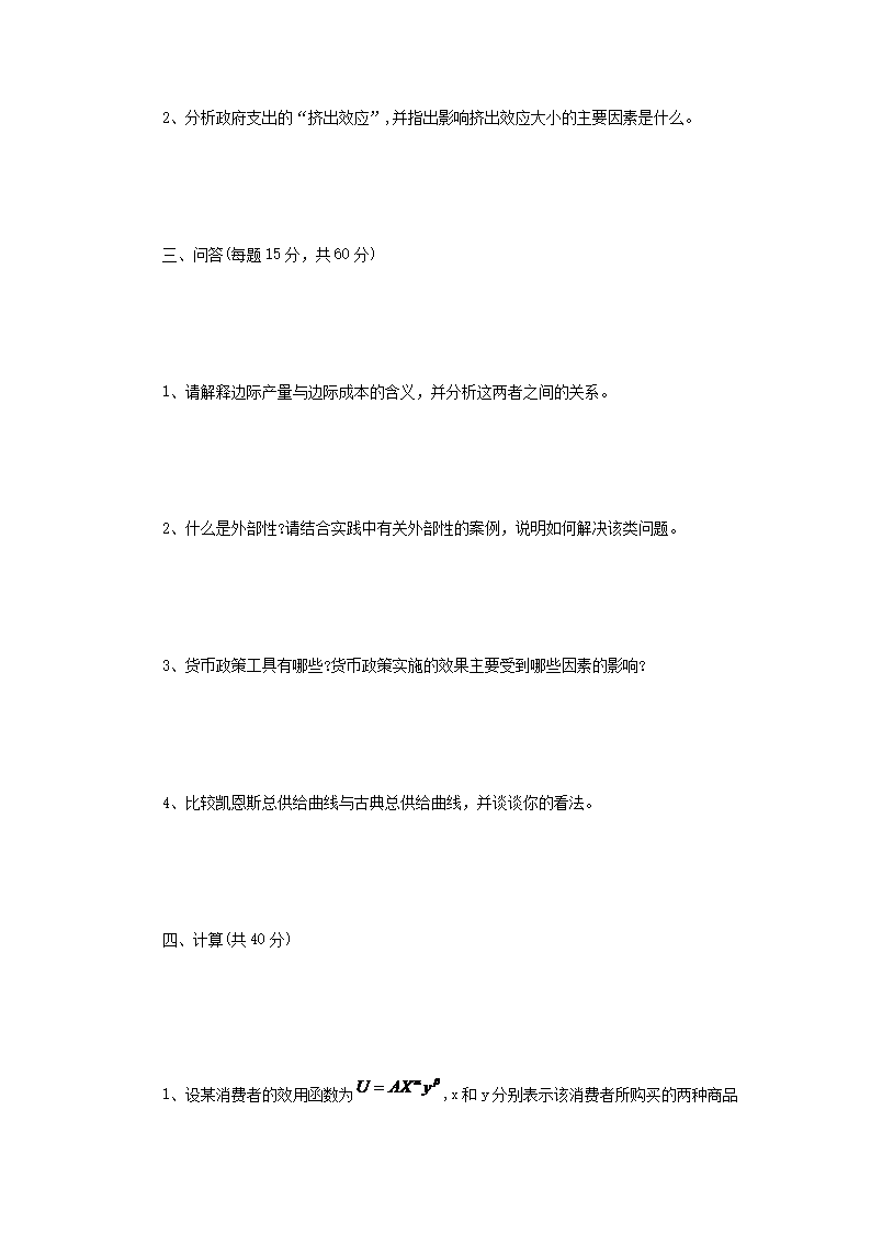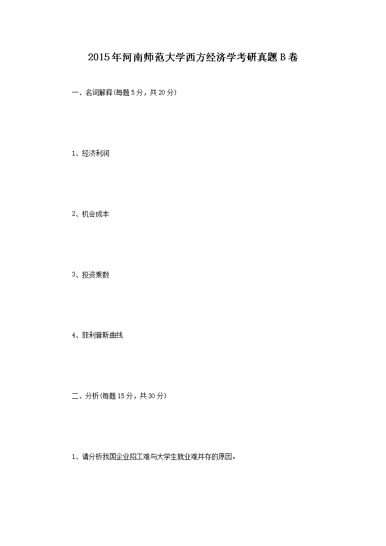 2015年河南师范大学西方经济学考研真题B卷(Word版)06-03