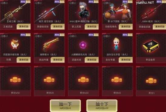 积分兑换:玩家通过抽奖获得的积分可用于道具兑换,消耗一定积分可兑换相应奖励,奖励可重复兑换。除此以外,《火线银行》活动中的积分可累积到下一个月。
