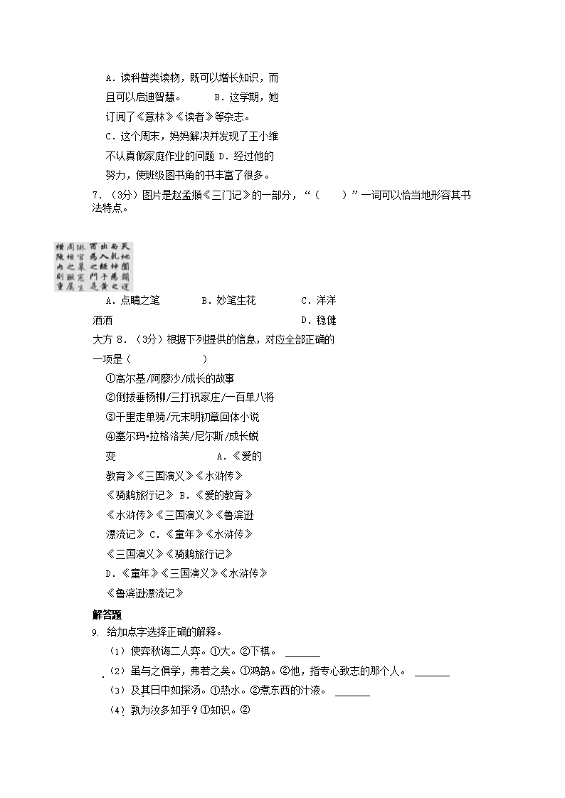 2022年安徽省安庆市迎江区小升初语文真题及答案(Word版)09-27