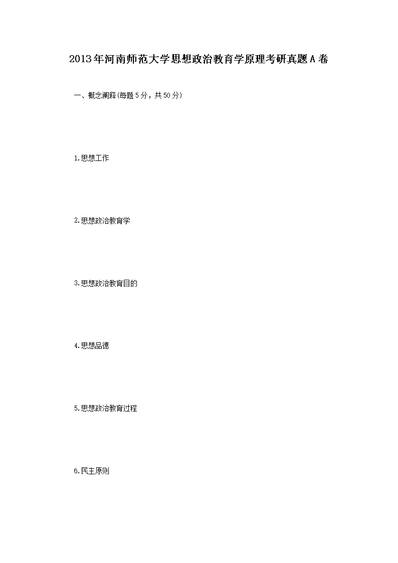 2013年河南师范大学思想政治教育学原理考研真题A卷(Word版)06-14