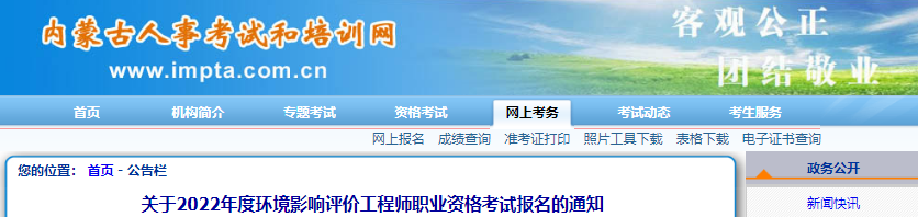 点击报名:2022年内蒙古环境影响评价工程师报名入口