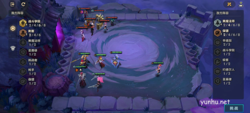 1、对面羁绊为4黑魔法师、2保镖,我方羁绊为6战斗学院和和2刺客(可以合成一个刺客转职)