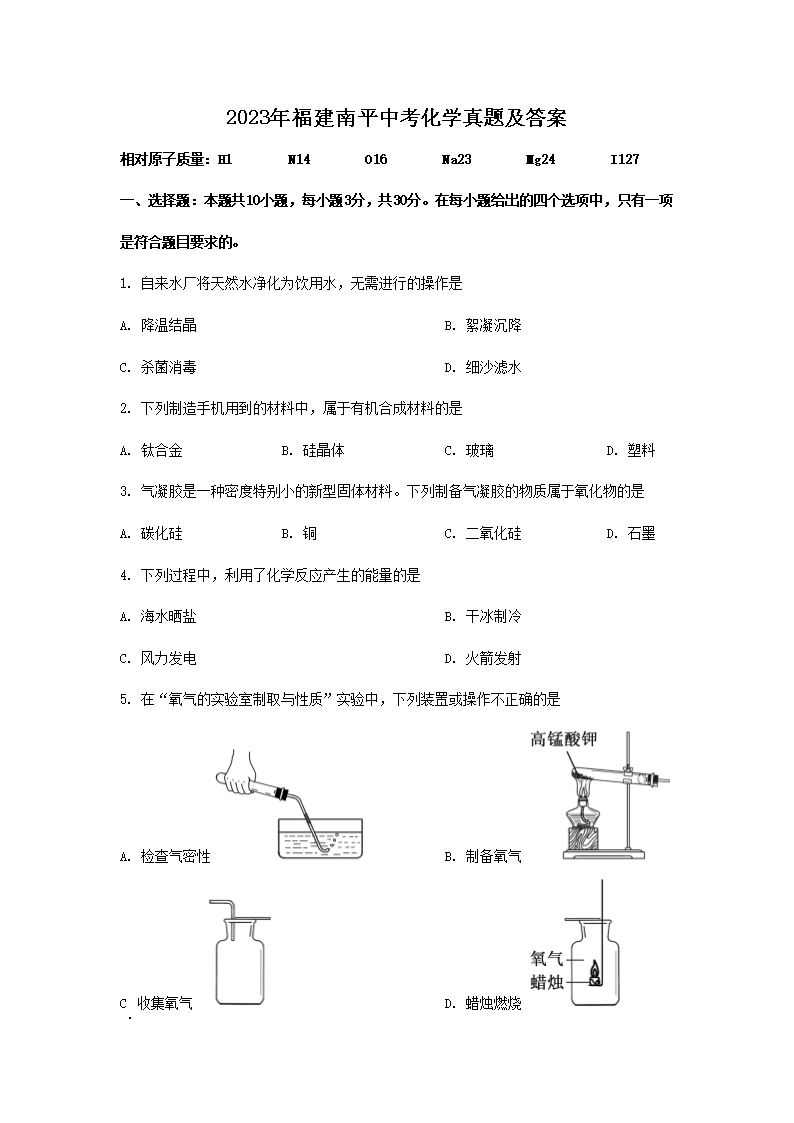 2023年福建南平中考化学真题及答案(Word版)07-13