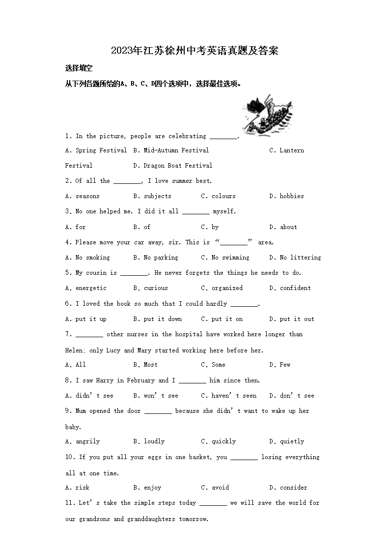 2023年江苏徐州中考英语真题及答案(Word版)10-25