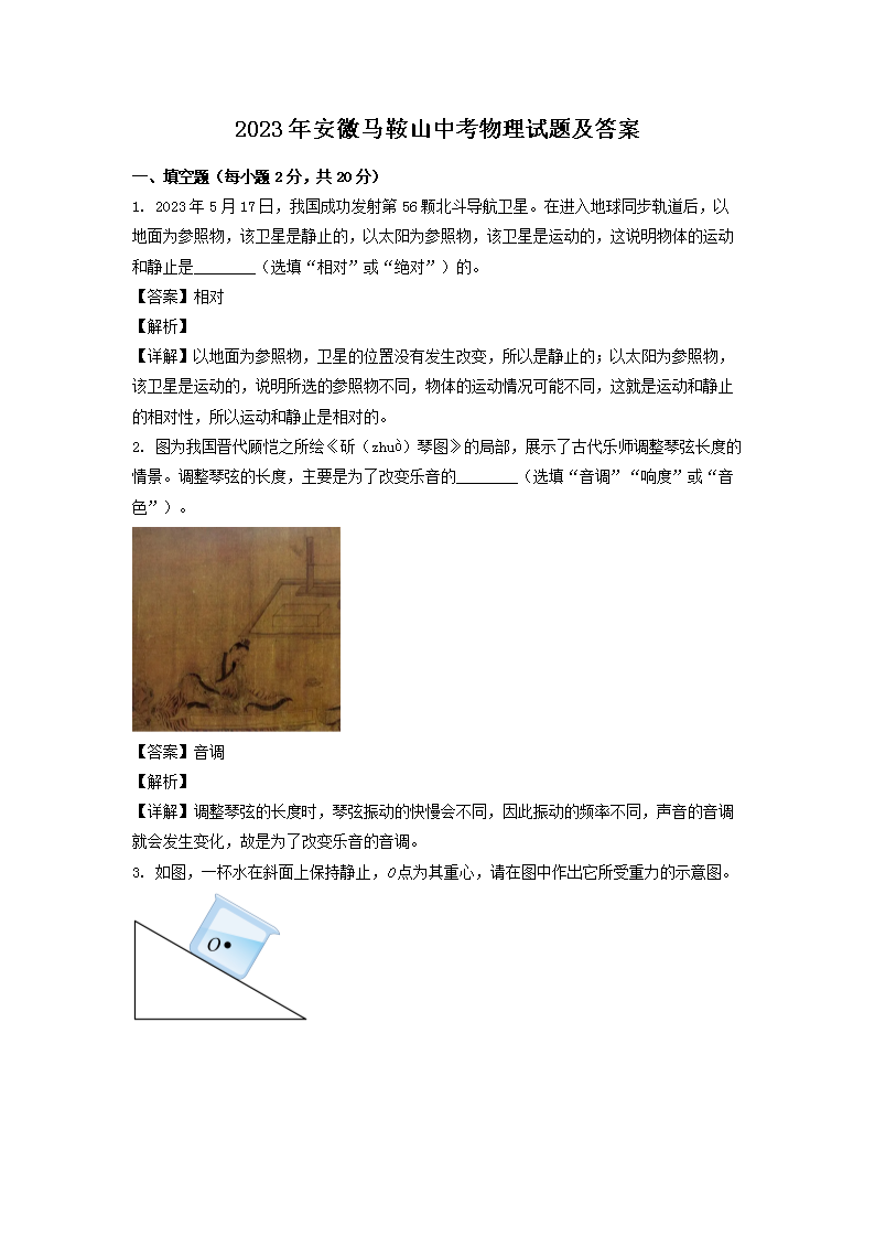 【文档预览】 文档大全网整理发布2023年安徽马鞍山中考物理试题及答案(Word版),前五页预览如下: