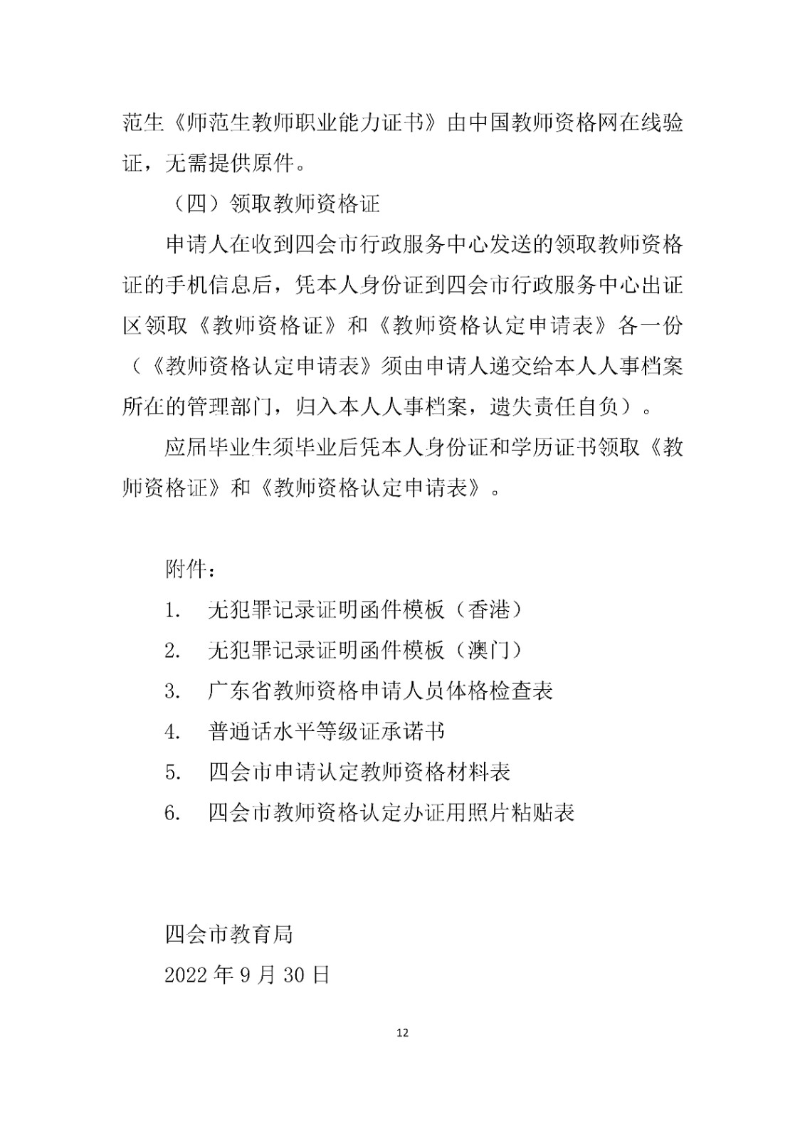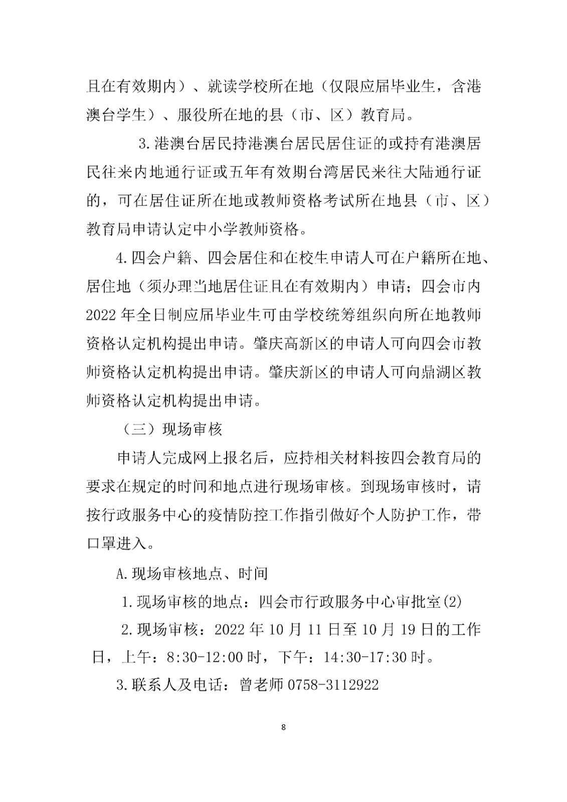 2022年下半年广东肇庆四会市中小学教师资格认定公告10-11
