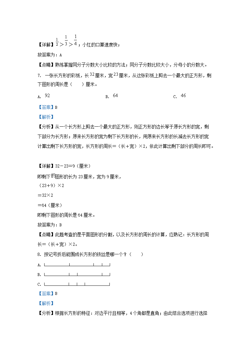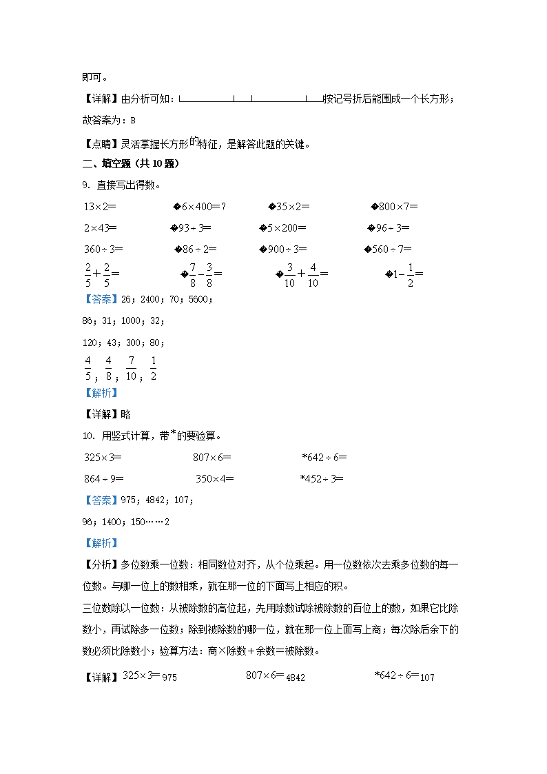 小学三年级下册数学第四单元练习题11-18