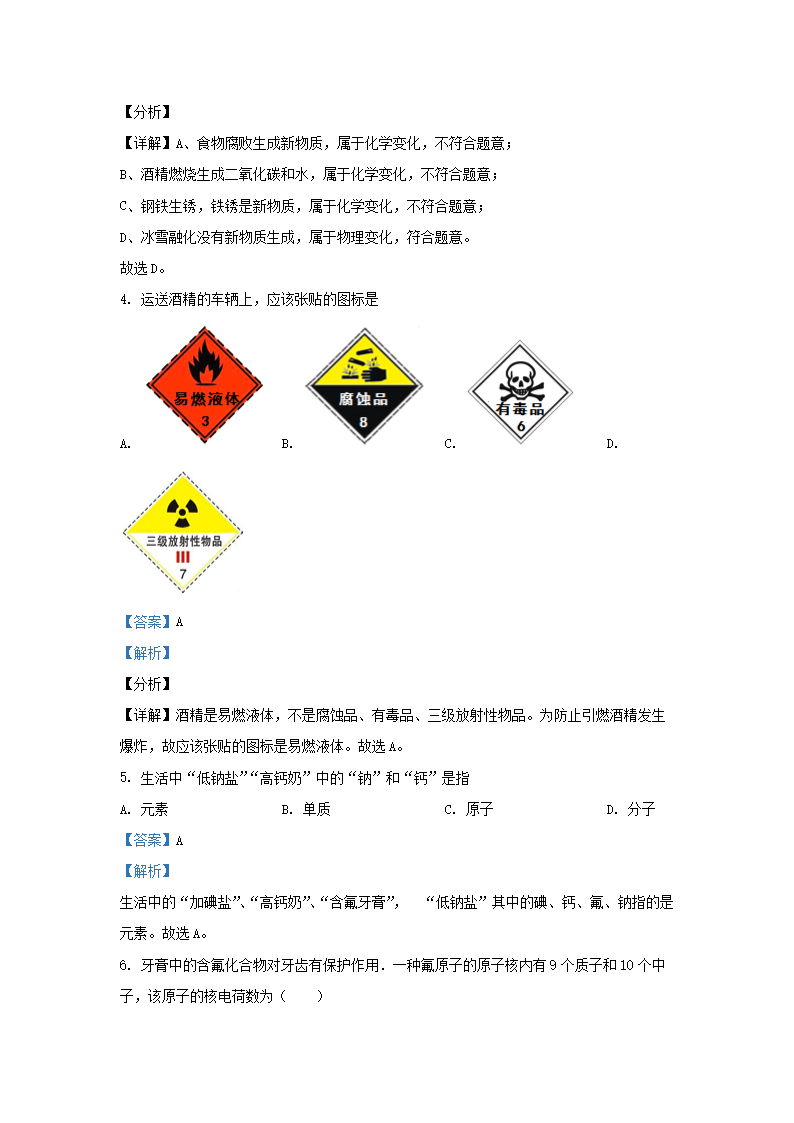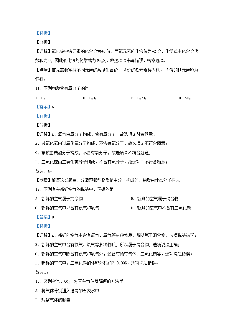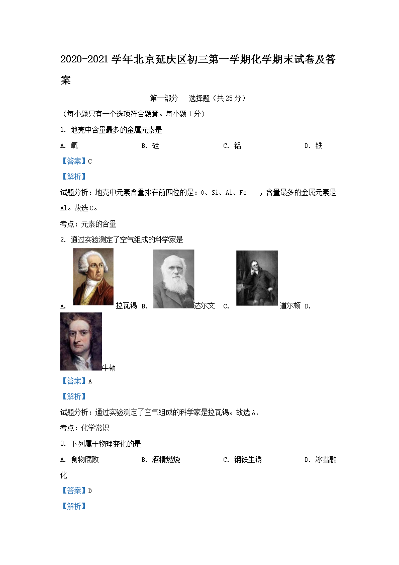 2020-2021学年北京延庆区初三第一学期化学期末试卷及答案(Word版)07-22