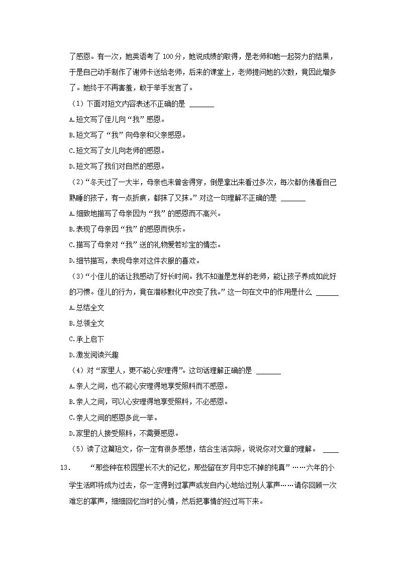 【文档预览】 文档大全网整理发布2023年安徽省六安市裕安区小升初语文真题及答案(Word版),前五页预览如下:
