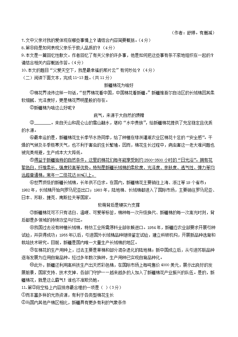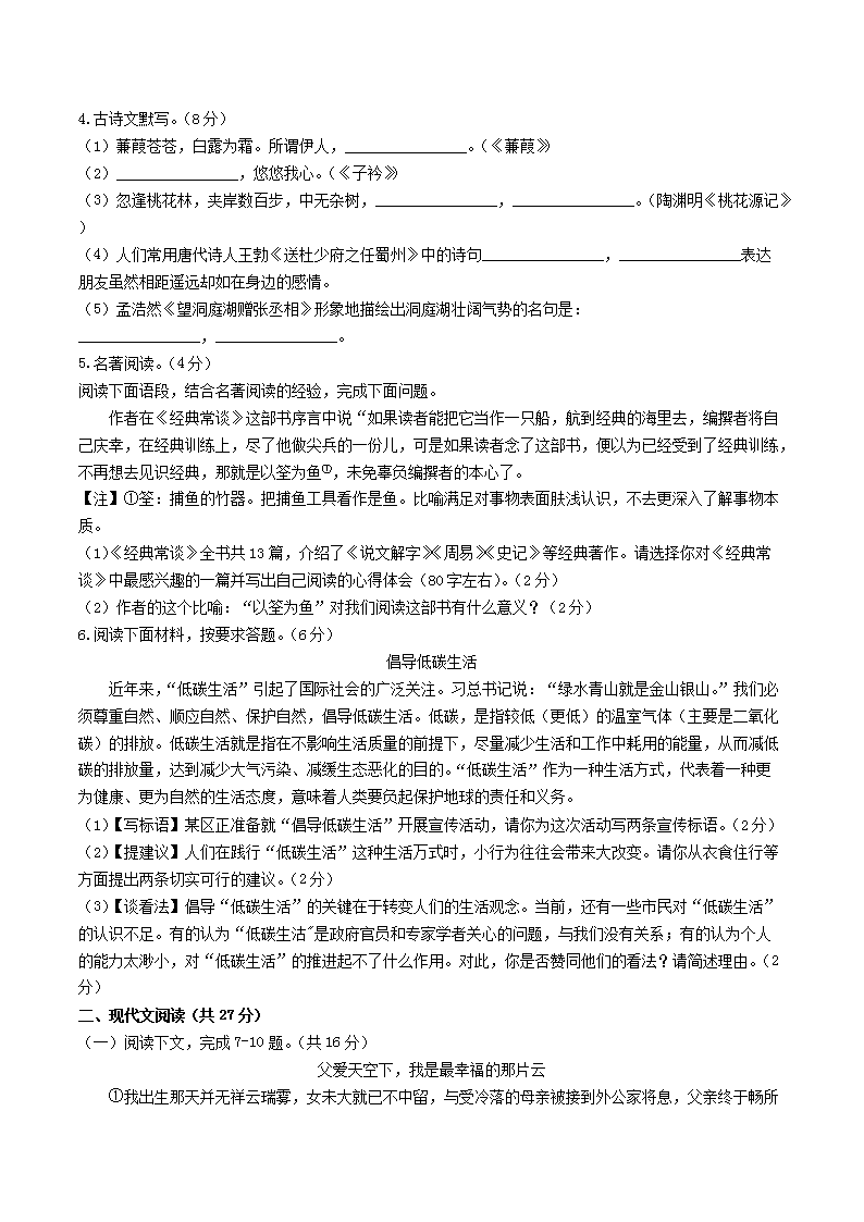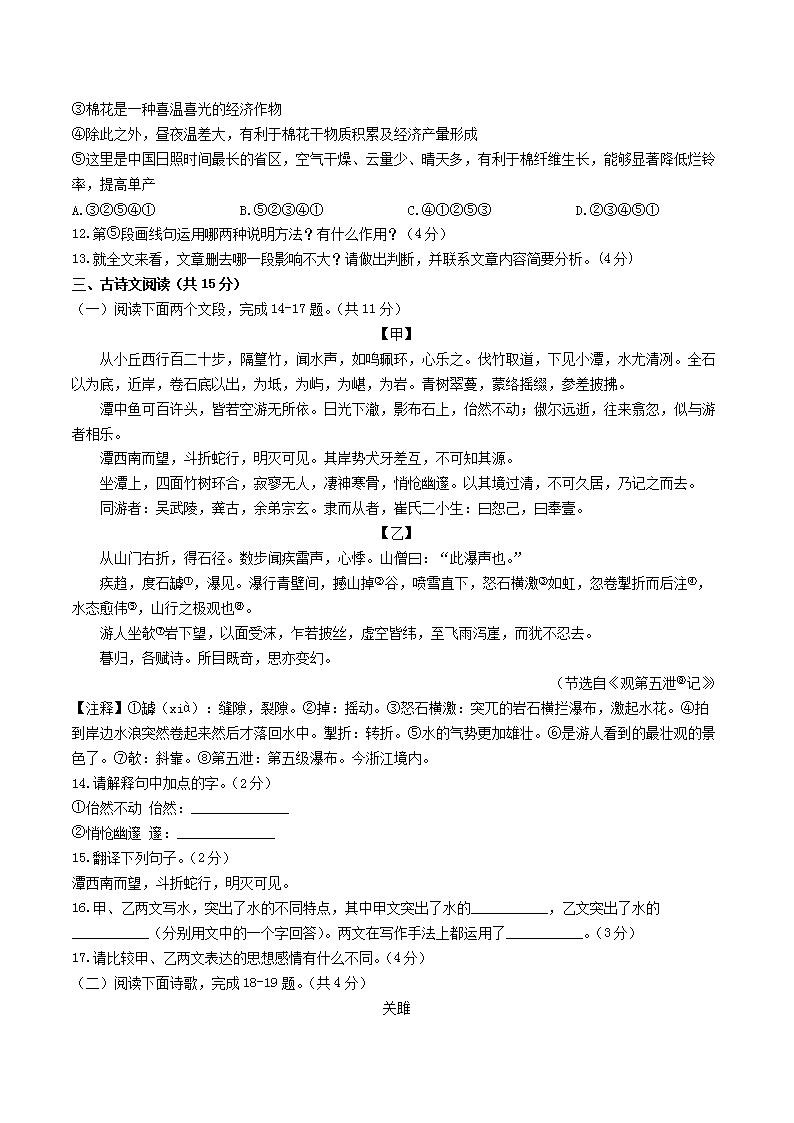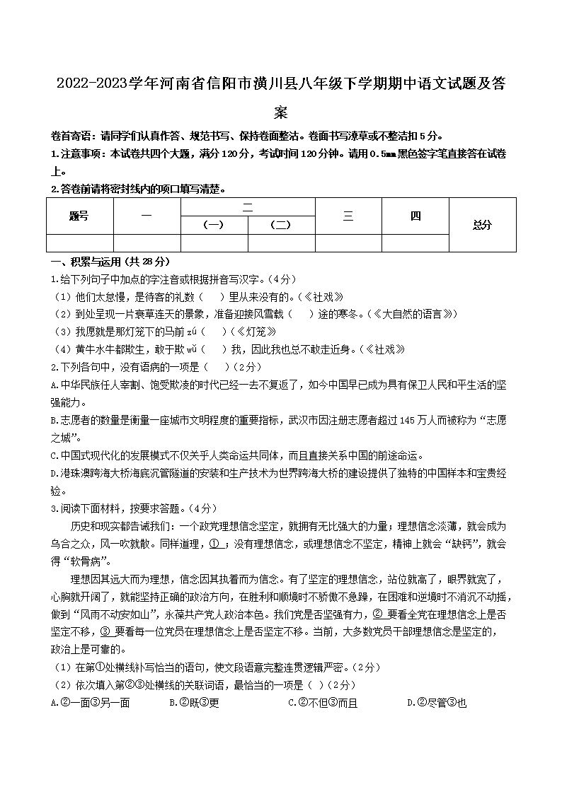 2022-2023学年河南省信阳市潢川县八年级下学期期中语文试题及答案(Word版)10-12