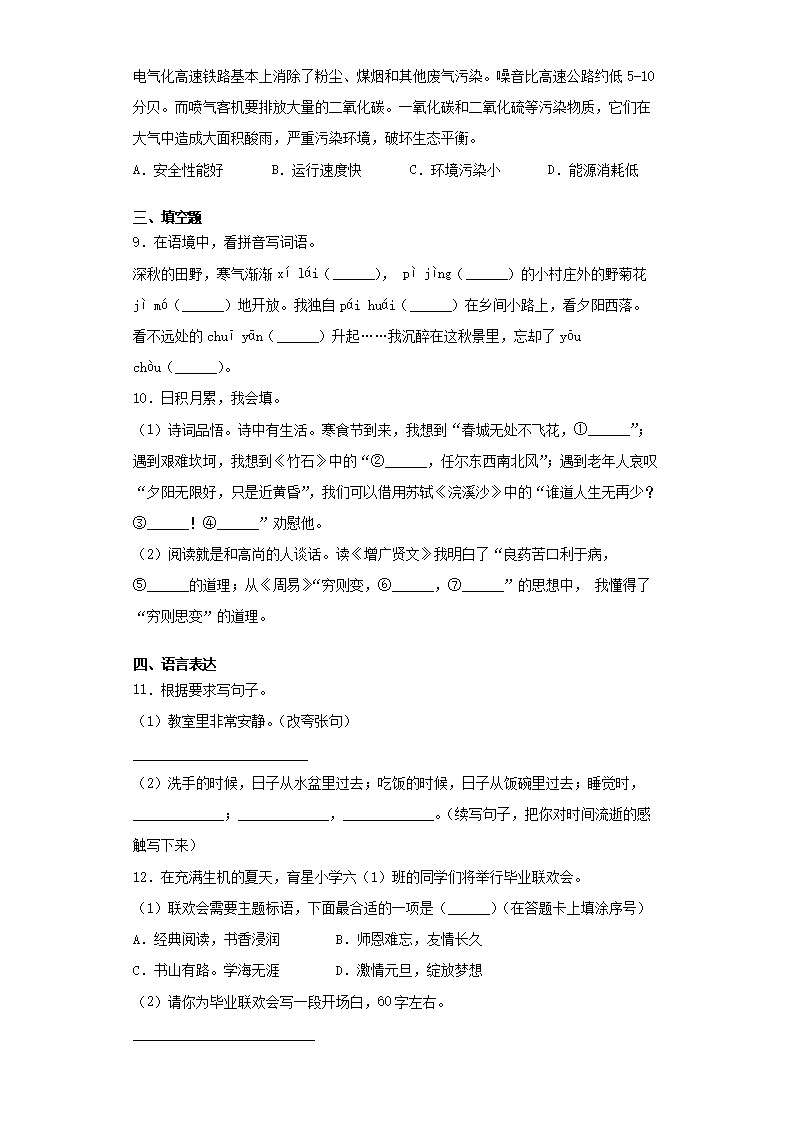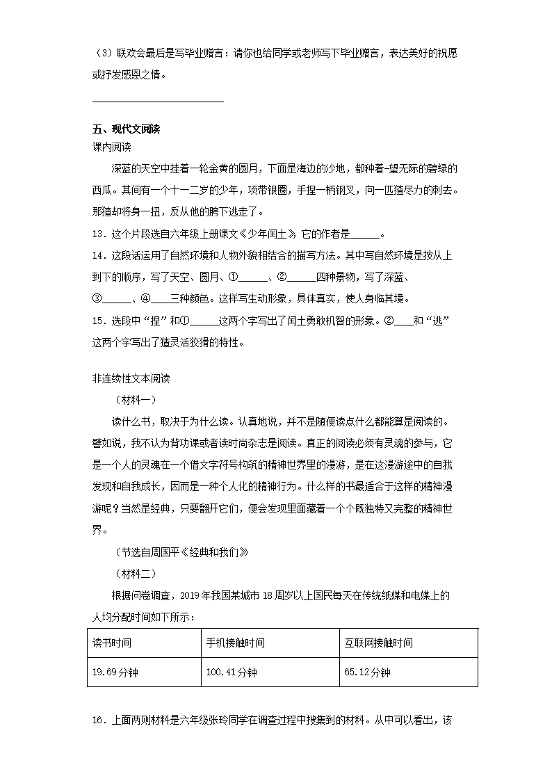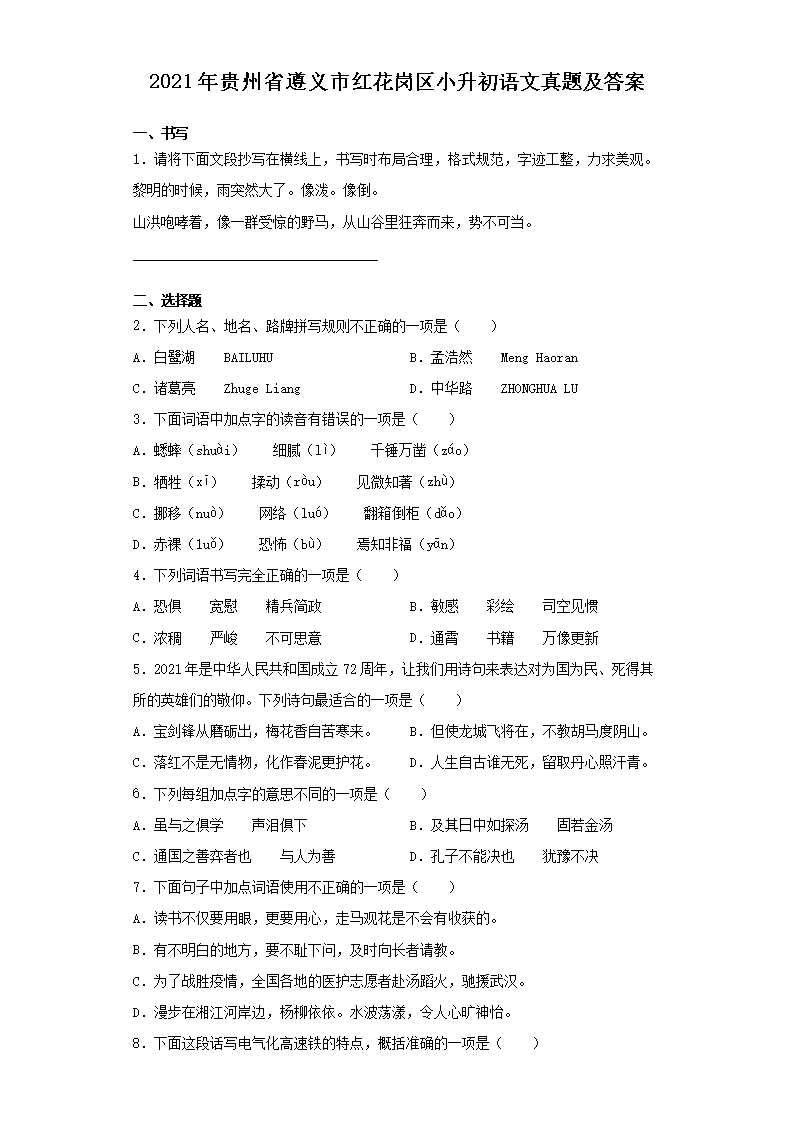 2021年贵州省遵义市红花岗区小升初语文真题及答案(Word版)08-01