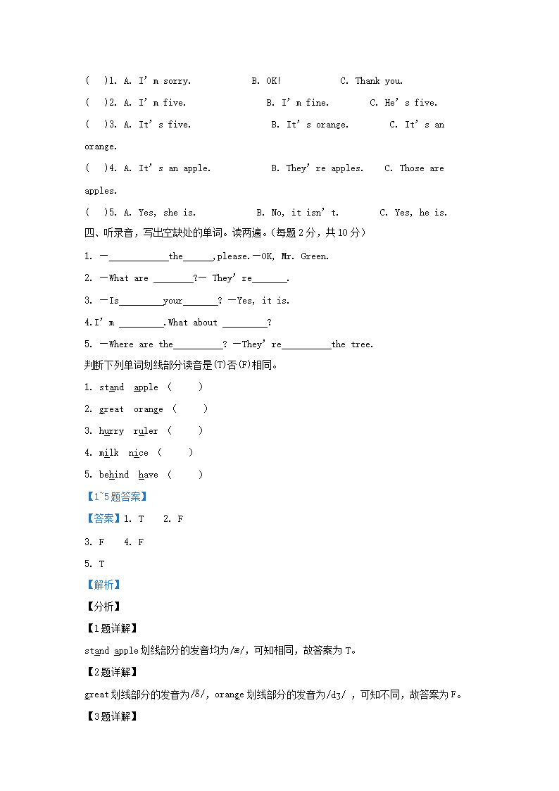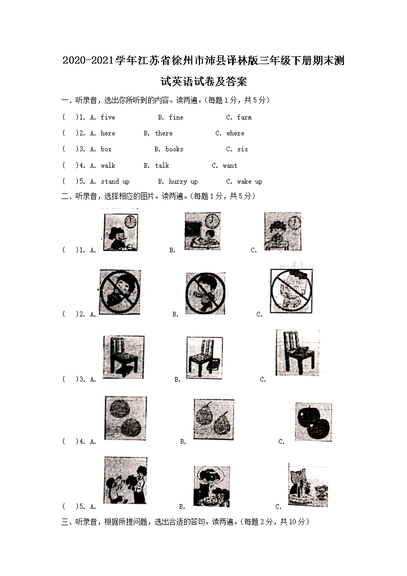 2020-2021学年江苏省徐州市沛县译林版三年级下册期末测试英语试卷及答案(Word版)08-04