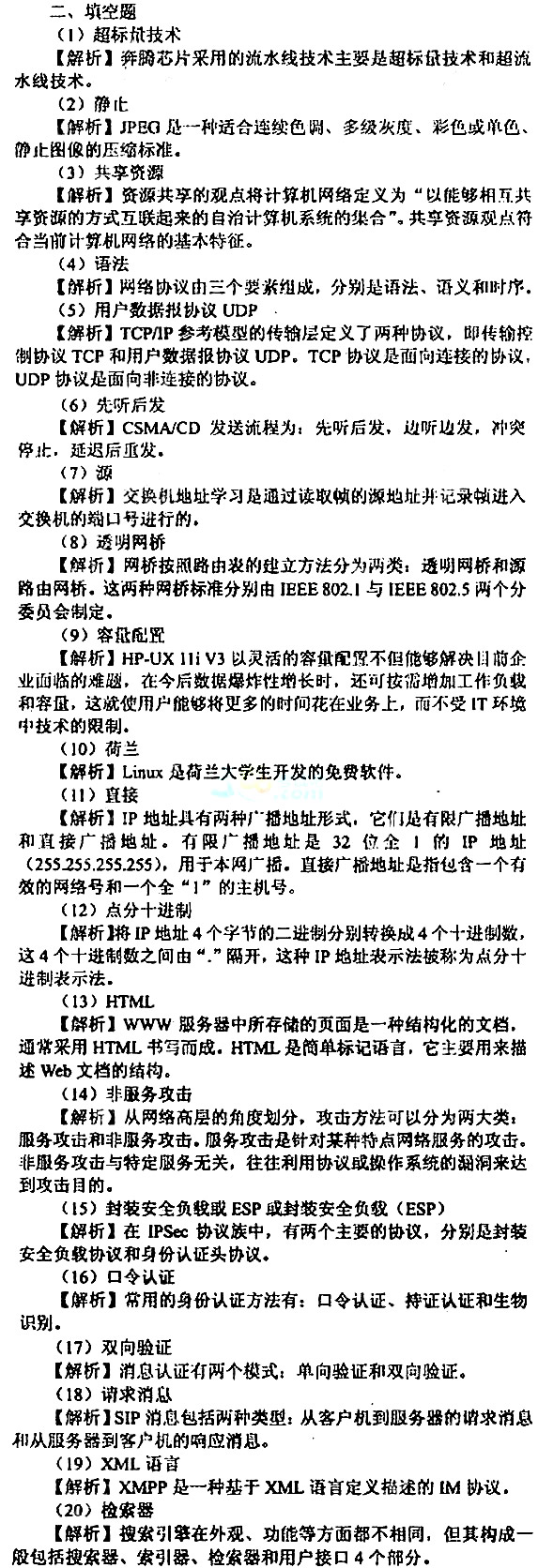 2017年计算机三级《网络技术》填空模拟试题及答案08-04