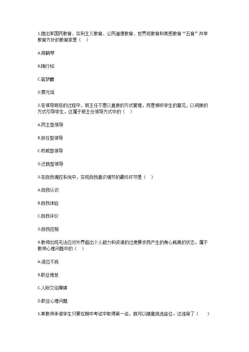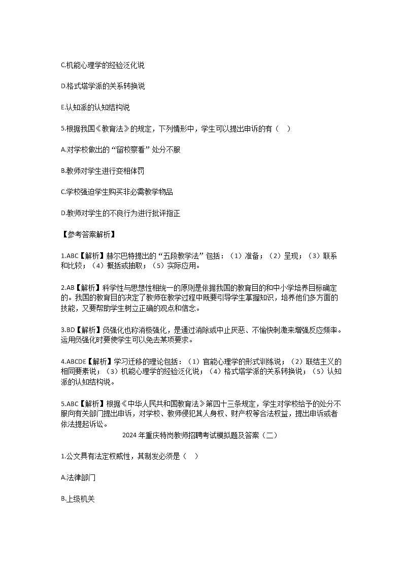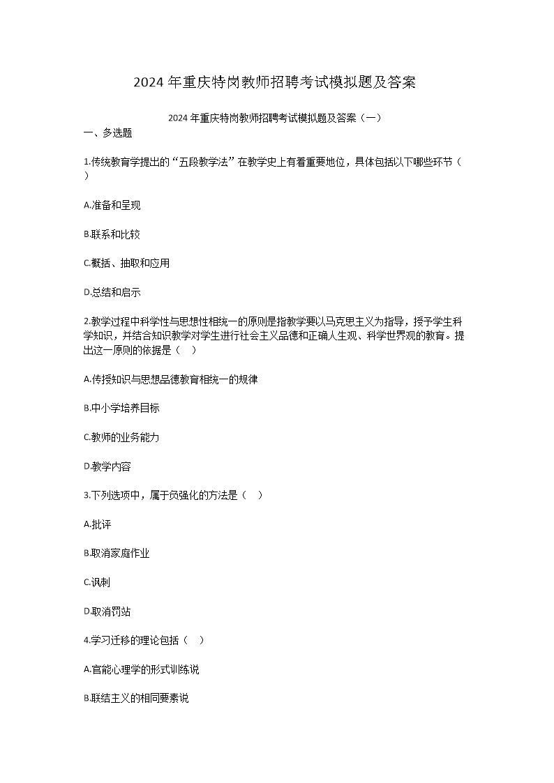 【文档预览】 文档大全网整理发布2024年重庆特岗教师招聘考试模拟题及答案(Word版),前五页预览如下: