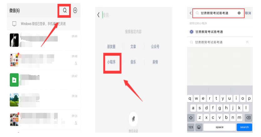 通过微信搜索小程序“甘肃教育考试易考通”进入。