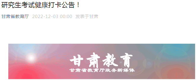 甘肃省2023年全国硕士研究招生考试健康打卡公告(打卡时间:11月16日-12月22日)12-07