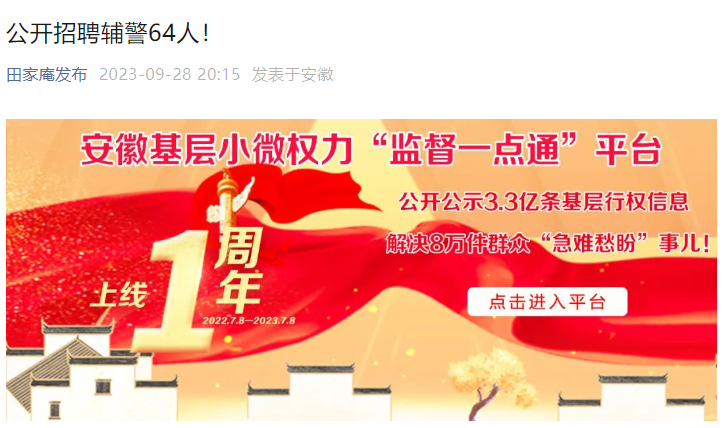 根据《安徽省公安机关警务辅助人员管理条例》等相关规定,为进一步充实我市公安机关警务辅助人员队伍,现面向社会公开招聘辅警,有关事项公告如下: