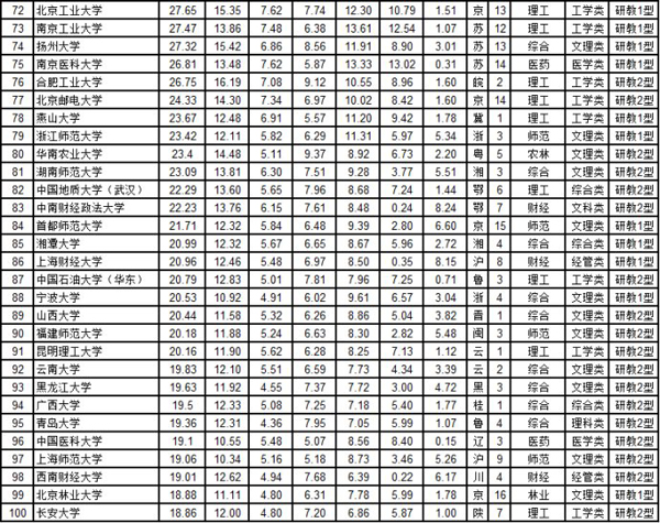 武书连2016中国大学综合实力排行榜100强