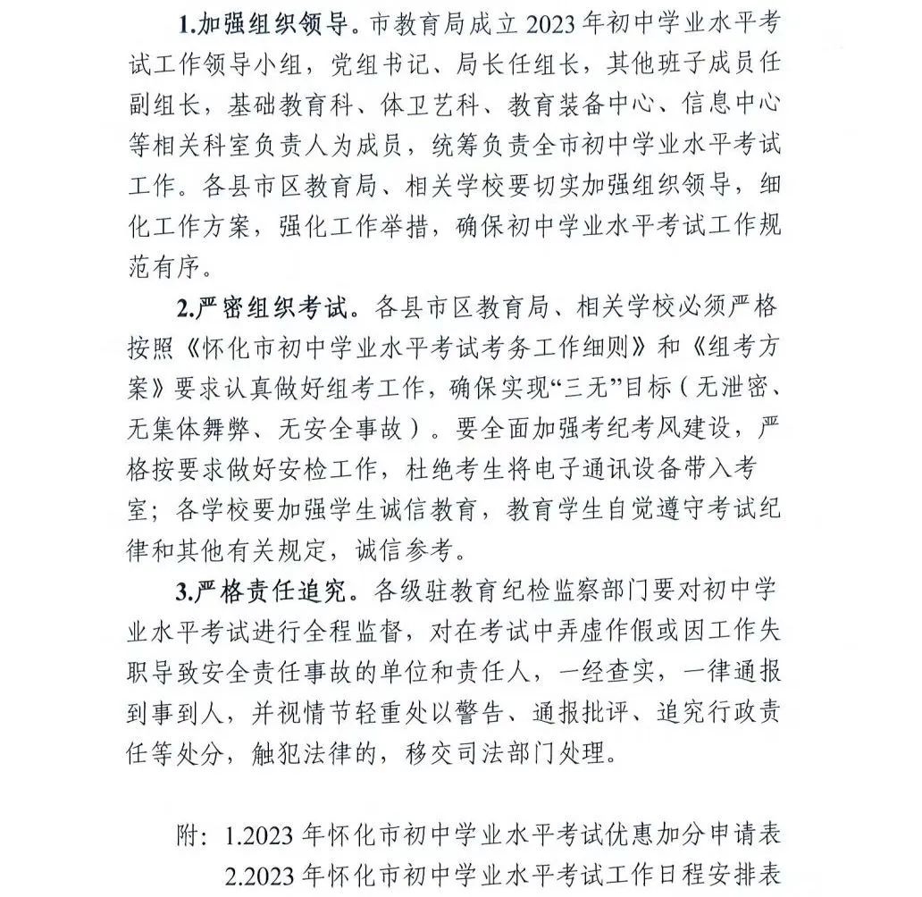 【#中考# 导语】©文档大全网中考频道从微言怀化教育了解到,2023年湖南怀化市初中学业水平考试工作实施方案已公布,具体如下: