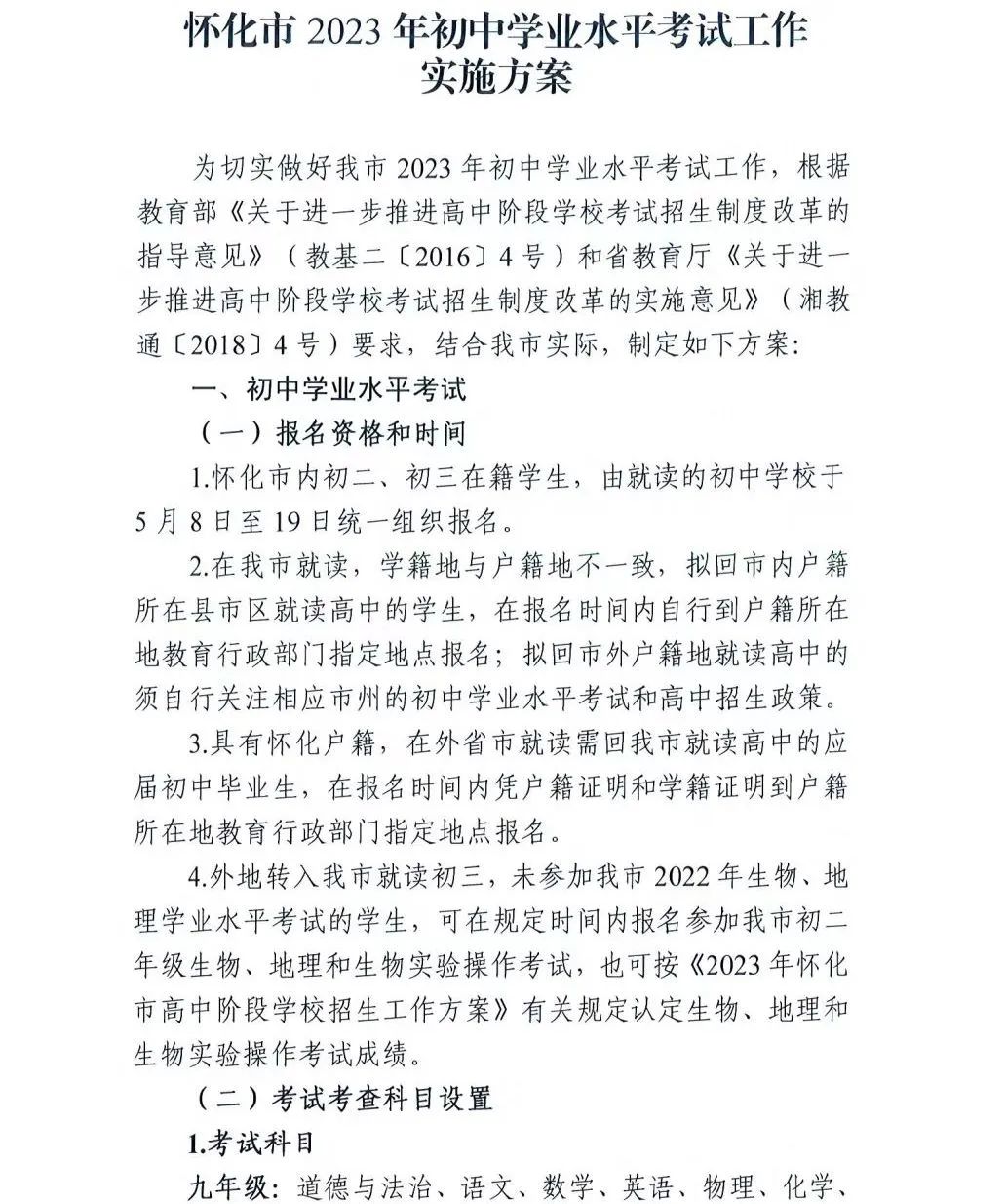 2023年湖南怀化市初中学业水平考试工作实施方案公布03-23
