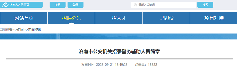 2023年山东济南市公安机关招录警务辅助人员报名时间在2023年9月25日9:00—10月8日16:00期间!