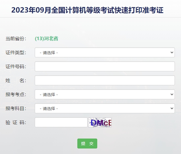 点击进入:2023年9月河北计算机等级考试准考证打印入口