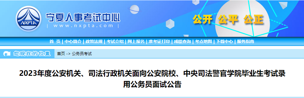 2023宁夏公安、司法行政机关面向公安、中央司法警官学院毕业生考录公务员面试公告05-24