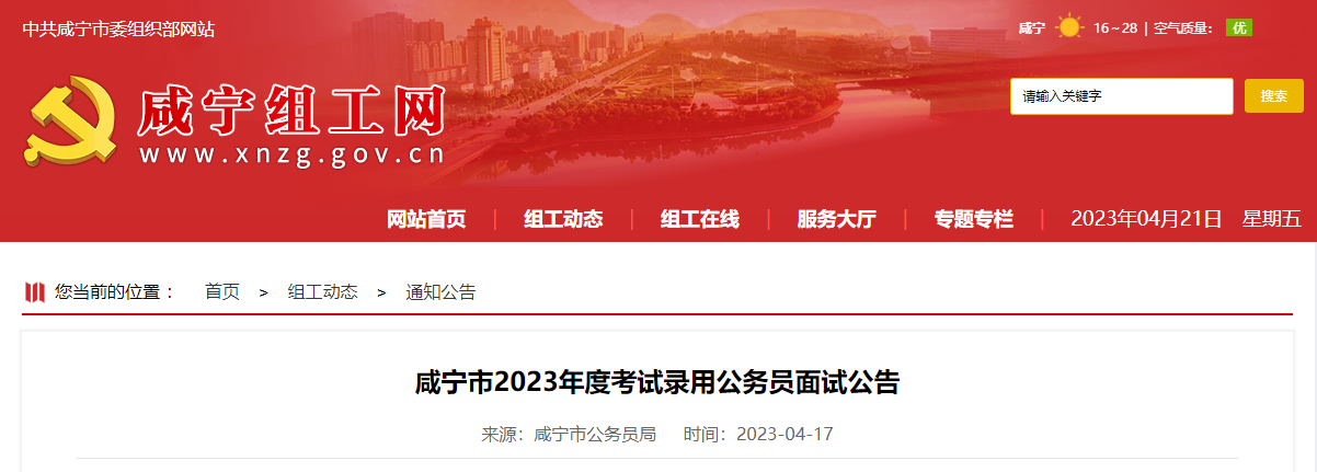 原文标题:咸宁市2023年度考试录用公务员面试公告