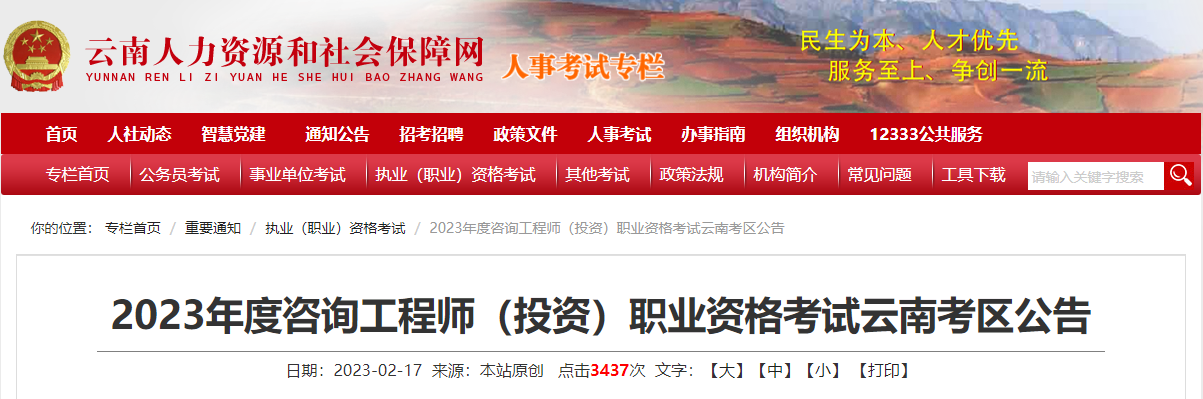 2023年云南咨询工程师(投资)职业资格考试报名通知02-22