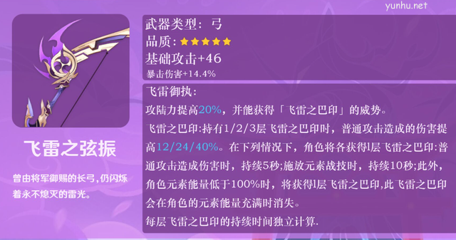 并且特效词条也有略微的不同,从提升元素伤害变成了提升20%攻击力,触发印记的条件一样,但是提升的伤害是普攻造成的伤害提高40%,要知道提高伤害的承区是跟元素伤害加成一样的,数值从28%变成了40%,因此这把弓的属性方面甚至上面的单手剑要更强,且完美符合宵宫的输出方式,当然了,也适合站场流的公子。