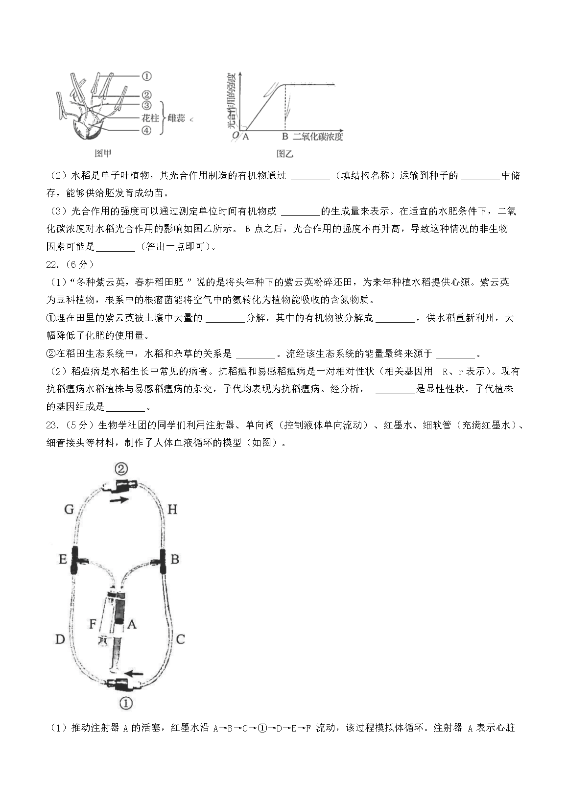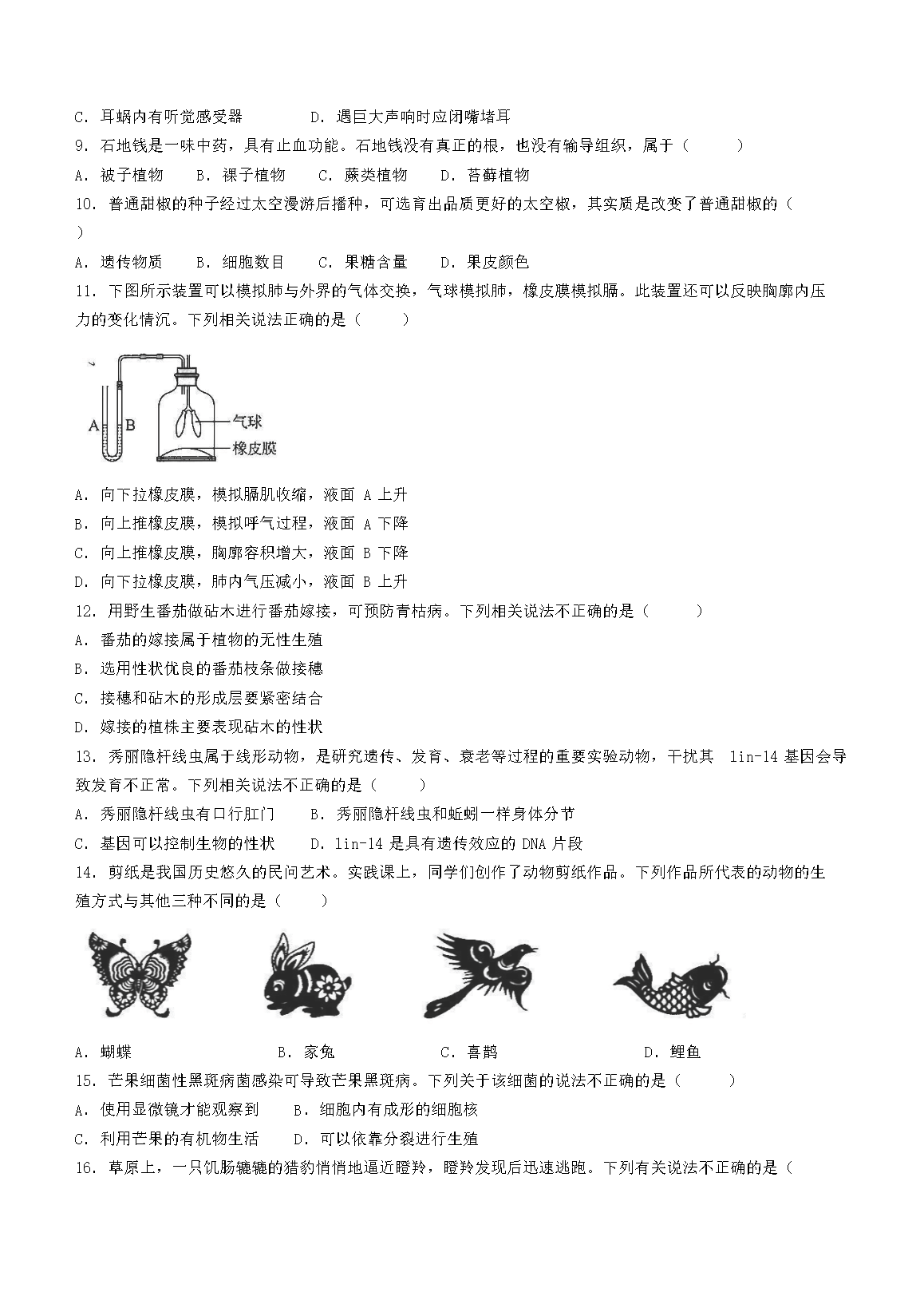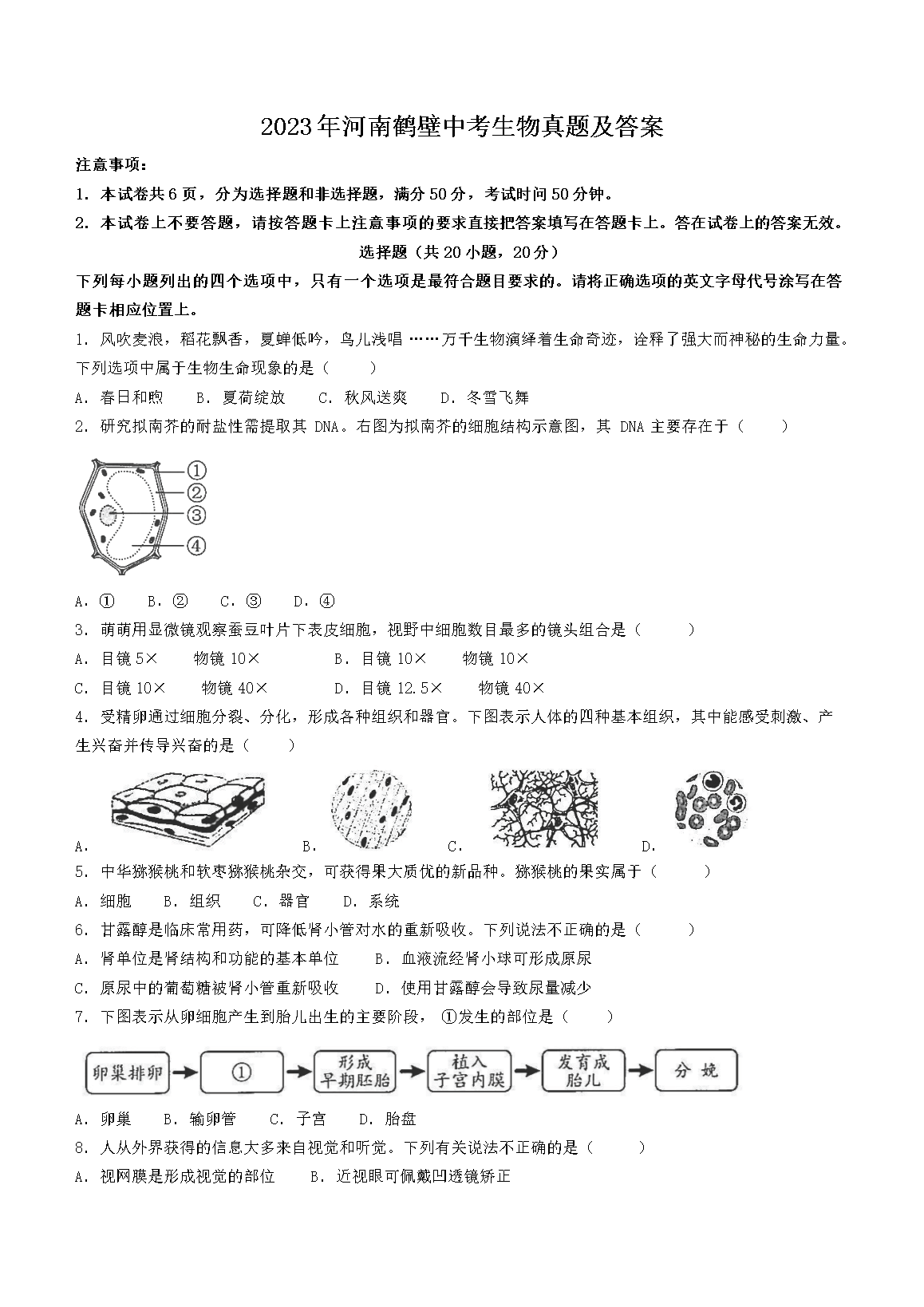 2023年河南鹤壁中考生物真题及答案(Word版)07-02